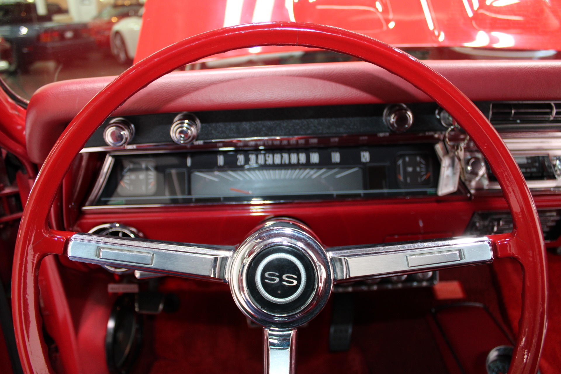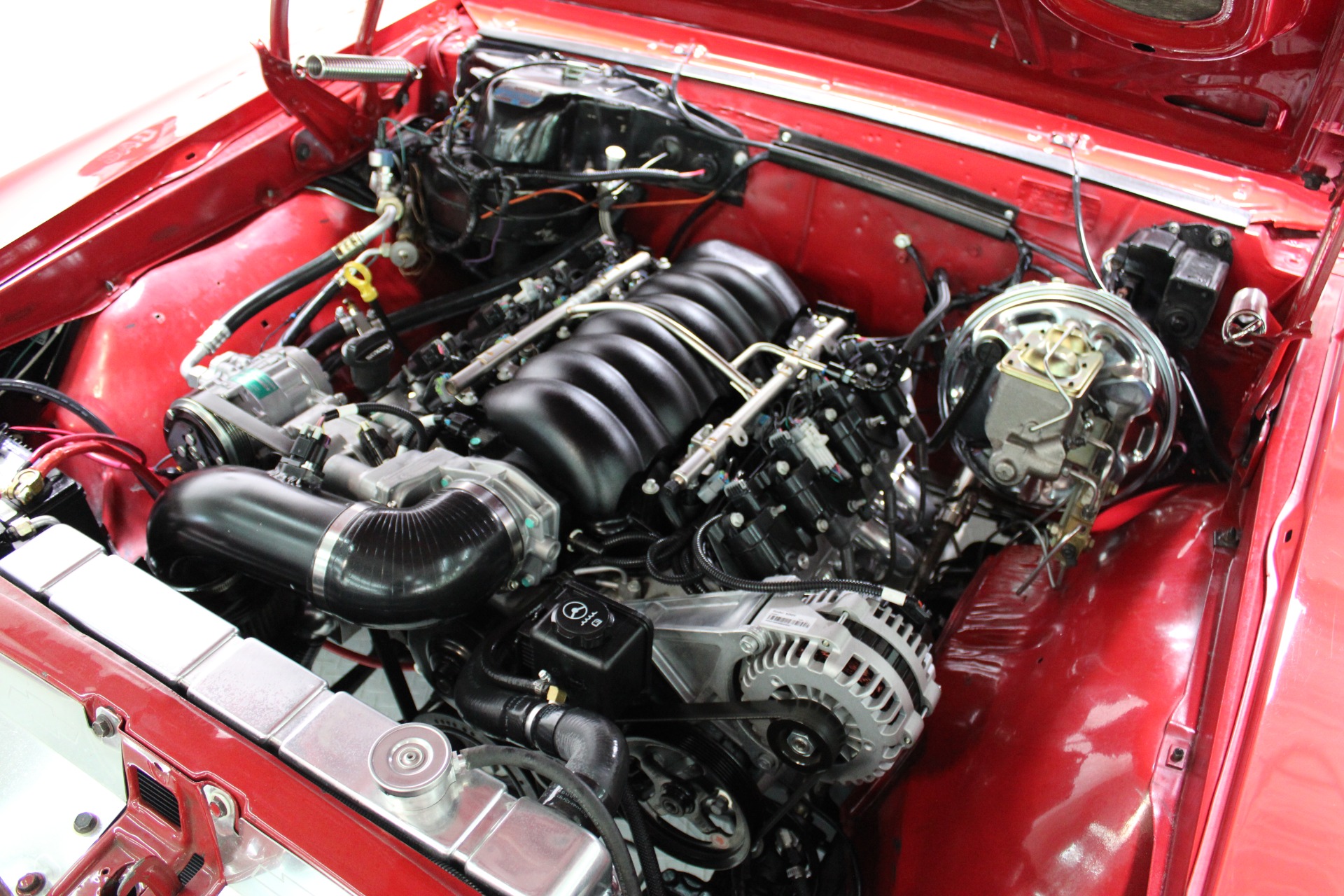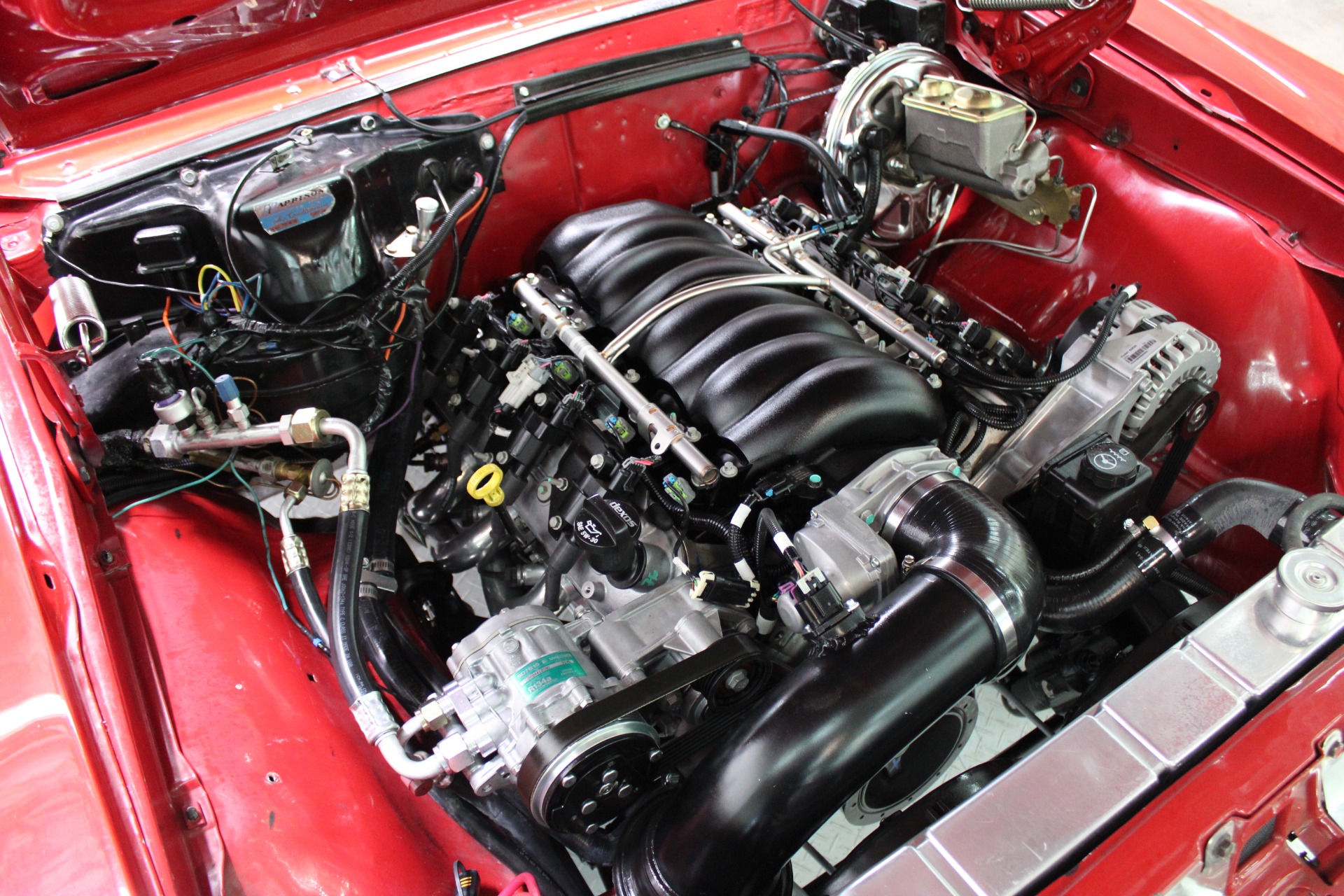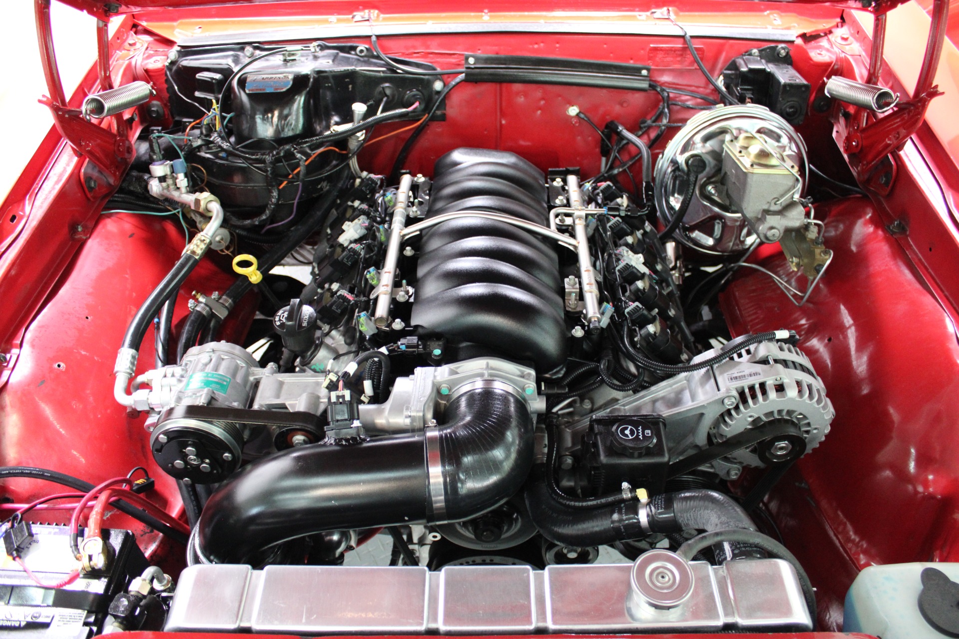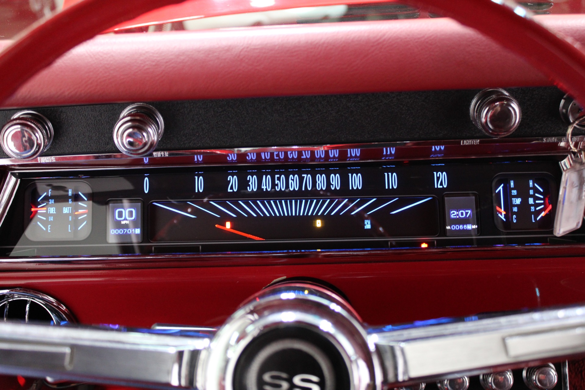 Under the hood lies the heart of innovation—a powerful LS engine that transforms this vintage beauty into a high-performance machine ready to conquer any road. The integration of Dakota Digital gauges provides precise monitoring while maintaining the car's nostalgic charm. Every detail has been thoughtfully restored or upgraded to enhance both aesthetics and functionality without compromising on its original allure.