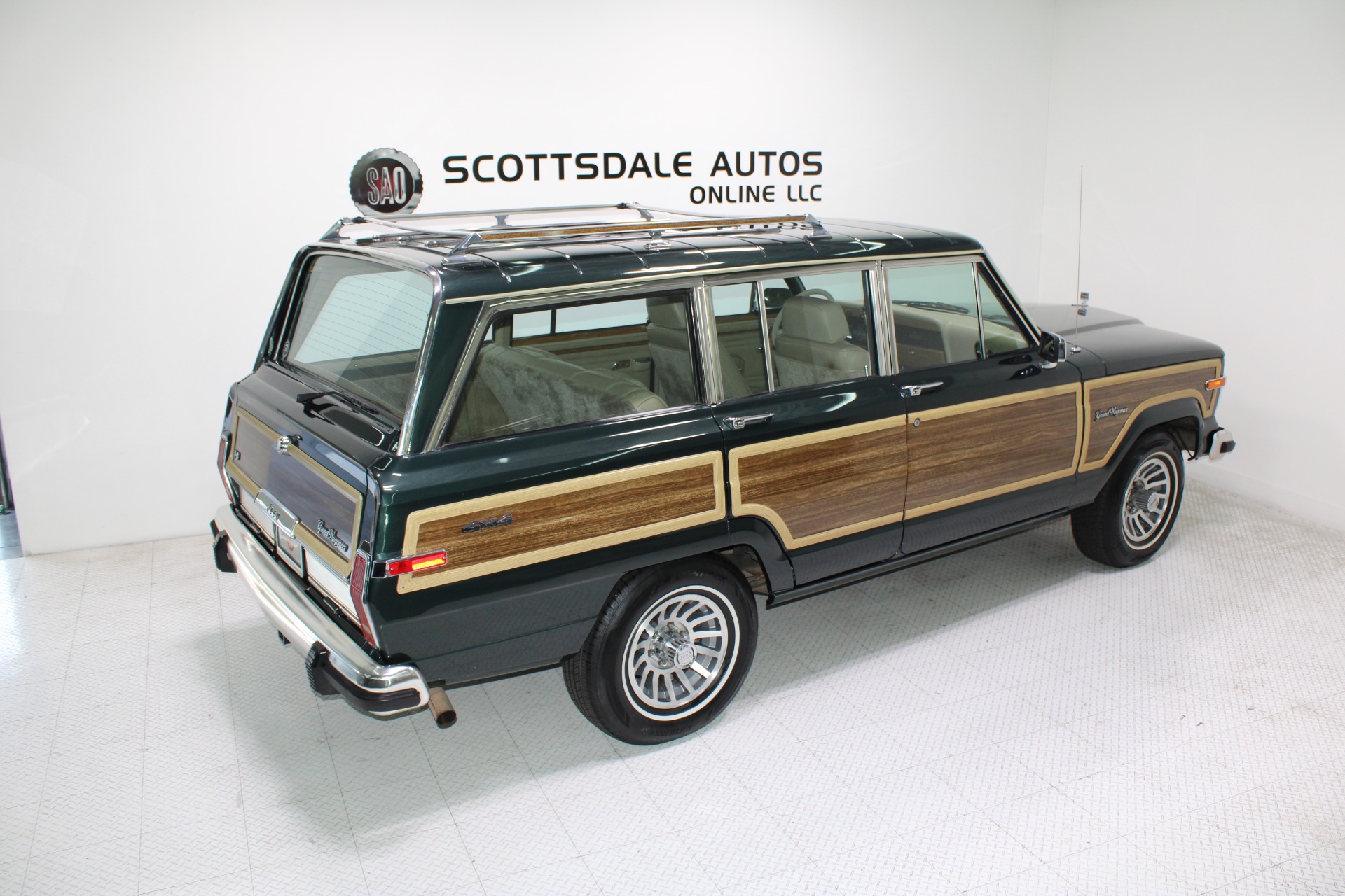 Don't miss out on owning a piece of automotive history! Visit www.AZWagoneers.com today for more pictures, access to a free Carfax report, and additional information about this exceptional vehicle. Or better yet, stop by our indoor air-conditioned showroom at Scottsdale Autos Online—your premier destination in Arizona for clean, no accident luxury cars with low mileage. Embrace nostalgia without sacrificing modern conveniences; make this remarkable Jeep Grand Wagoneer yours today!