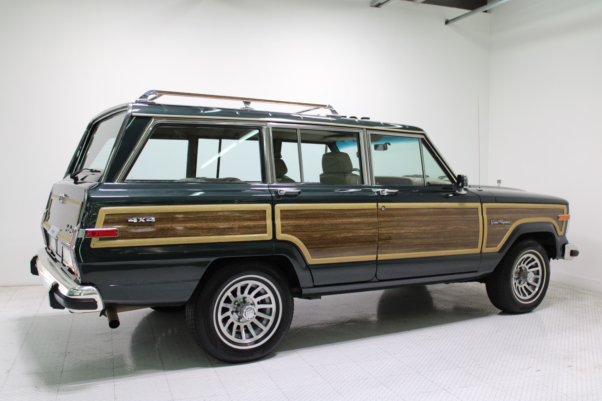 Underneath its distinguished exterior lies modern reliability thanks to its fuel-injected engine—a feature that ensures smoother performance and enhanced efficiency compared to earlier models. The legendary 4X4 capability promises unparalleled off-road adventures while maintaining comfort on city streets. Whether you're navigating through rough terrains or cruising down highways, this Grand Wagoneer delivers an experience that's both thrilling and comfortable.