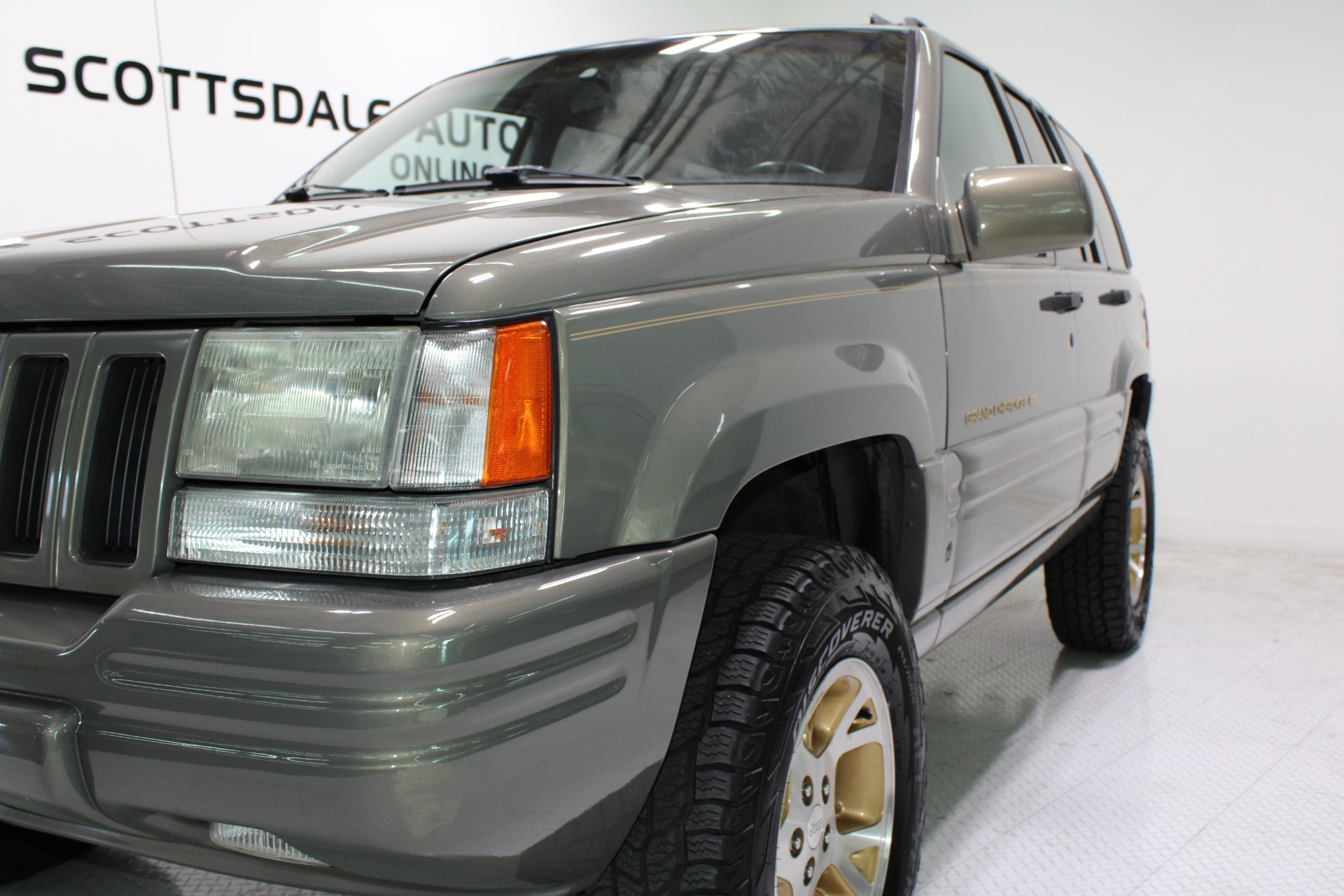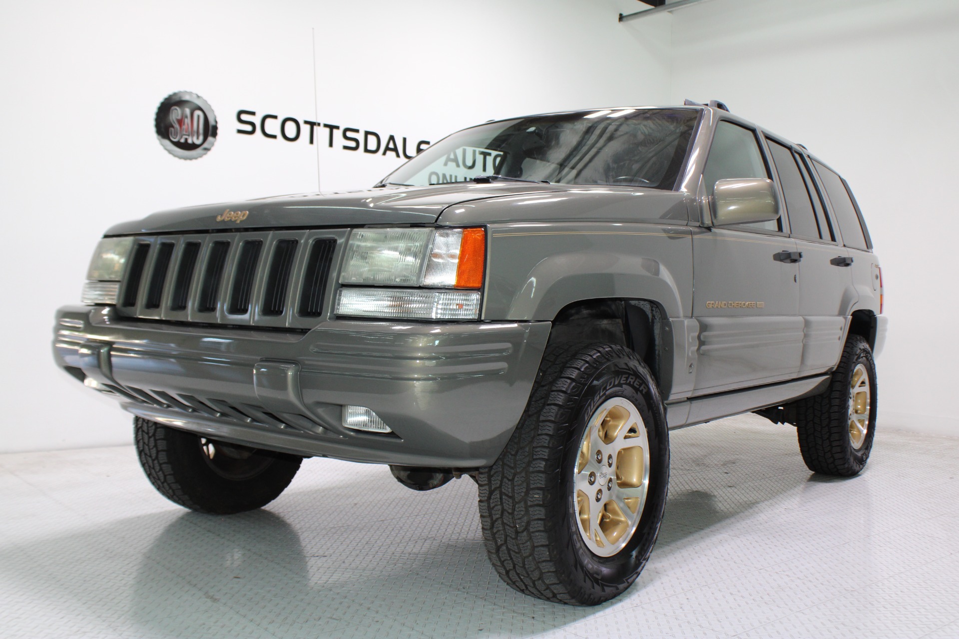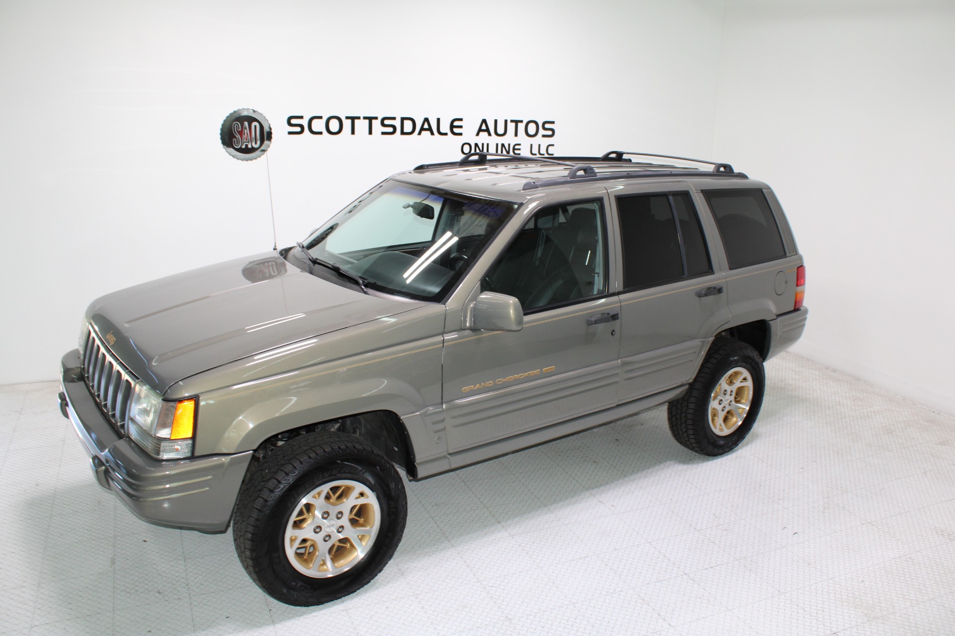 This studly and stylish Char Gold 1997 Jeep Grand Cherokee Limited 5.2 V8 is offered to you for sale by Scottsdale Autos Online, LLC. WWW.SCOTTSDALEAUTOSONLINE.COM FOR MORE PICS, FREE CARFAX AND MORE INFO. OR STOP BY AND VISIT OUR INDOOR, AIR-CONDITIONED SHOWROOM. AS ALWAYS, SCOTTSDALE AUTOS ONLINE IS YOUR SOURCE FOR CLEAN, NO ACCIDENT, LOW MILE LUXURY CARS IN AZ! Slightly lifted with oversized tires give this rig a more aggressive stance and a little more ground clearance without sacrificing ride quality. Inspected, serviced , detailed and ready for the next round of adventure! Whether it's a road trip adventure machine, daily driver, first car, etc, it's sure to please! The tires on the vehicle appear to have been recently replaced. The paint has a showroom shine. This vehicle has all of the right options. With just 81,239 miles, this car is barely broken in. Very low mileage vehicle. This was an extra vehicle for the previous owner and the mileage is consistent with its limited use. You won't find another vehicle like this with lower mileage!= 100% CARFAX guaranteed! This car has successfully undergone a rigorous pre-buy inspection. The interior of this vehicle is virtually flawless. An after-market warranty is available for purchase on this vehicle. It seems that this vehicle was owned by a non-smoker. Neither the ashtray, nor the cigarette lighter, appear to have been used in this vehicle. The transmission in this vehicle shifts very smoothly. Very smooth ride! All electronic components in working condition. All interior components are in good working order. One of the most attractive color combinations available on a Grand Cherokee! A Grand Cherokee in this condition, with these options and this color combination is an absolute rarity! This vehicle is priced to sell. This is destined to be a classic. The perfect blend of luxury and performance. From car pooling the neighborhood kids, to navigating the most rugged terrain imaginable -the 1997 Grand Cherokee can do it all! The 1997 Jeep Grand Cherokee: the perfect blend of daily driver and family hauler. We can help facilitate low-cost shipping directly to your door. At Scottsdale Autos Online, no matter what vehicle you are looking for, we can find it for you. $dealership) is excited to offer this ($year) ($make) ($model) for only ($price)! At Scottsdale Autos Online, we strive to provide you with the best quality vehicles for the lowest possible price, and this Grand Cherokee is no exception.