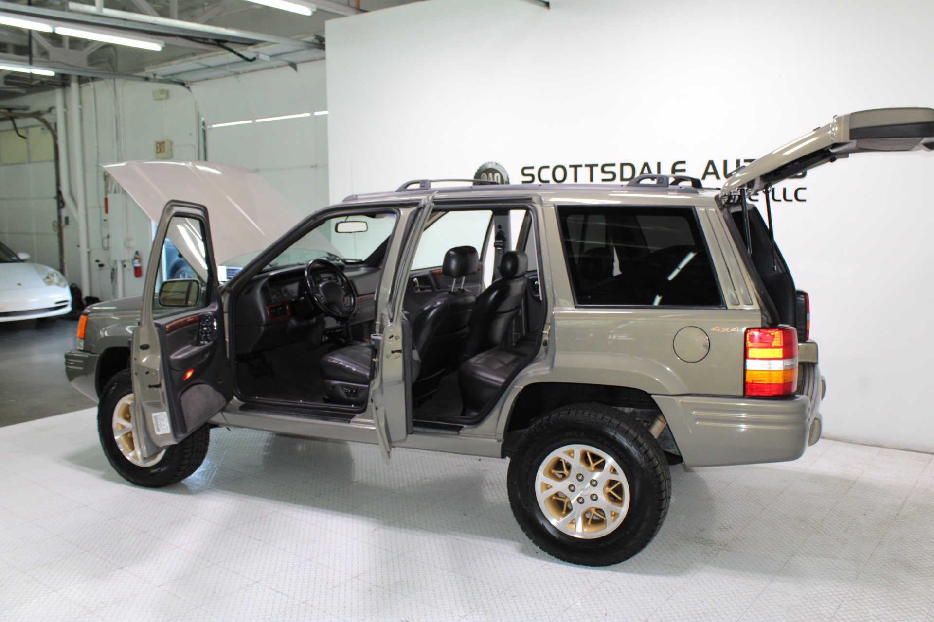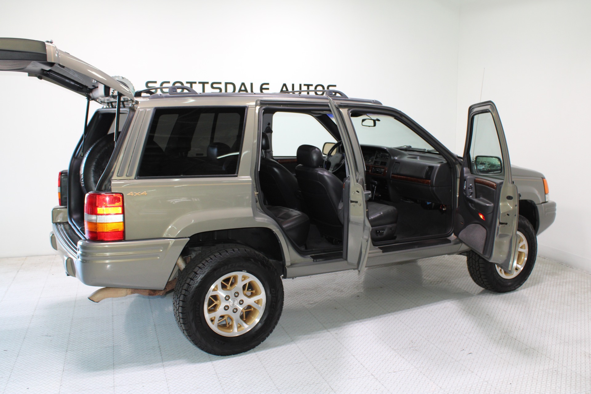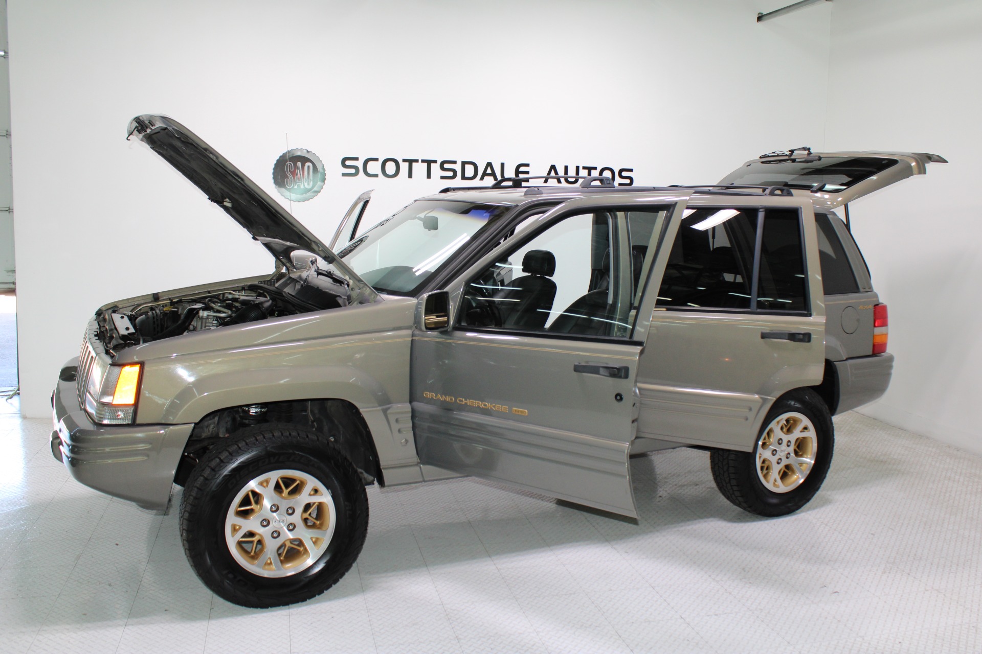 This studly and stylish Char Gold 1997 Jeep Grand Cherokee Limited 5.2 V8 is offered to you for sale by Scottsdale Autos Online, LLC. WWW.SCOTTSDALEAUTOSONLINE.COM FOR MORE PICS, FREE CARFAX AND MORE INFO. OR STOP BY AND VISIT OUR INDOOR, AIR-CONDITIONED SHOWROOM. AS ALWAYS, SCOTTSDALE AUTOS ONLINE IS YOUR SOURCE FOR CLEAN, NO ACCIDENT, LOW MILE LUXURY CARS IN AZ! Slightly lifted with oversized tires give this rig a more aggressive stance and a little more ground clearance without sacrificing ride quality. Inspected, serviced , detailed and ready for the next round of adventure! Whether it's a road trip adventure machine, daily driver, first car, etc, it's sure to please! The tires on the vehicle appear to have been recently replaced. The paint has a showroom shine. This vehicle has all of the right options. With just 81,239 miles, this car is barely broken in. Very low mileage vehicle. This was an extra vehicle for the previous owner and the mileage is consistent with its limited use. You won't find another vehicle like this with lower mileage!= 100% CARFAX guaranteed! This car has successfully undergone a rigorous pre-buy inspection. The interior of this vehicle is virtually flawless. An after-market warranty is available for purchase on this vehicle. It seems that this vehicle was owned by a non-smoker. Neither the ashtray, nor the cigarette lighter, appear to have been used in this vehicle. The transmission in this vehicle shifts very smoothly. Very smooth ride! All electronic components in working condition. All interior components are in good working order. One of the most attractive color combinations available on a Grand Cherokee! A Grand Cherokee in this condition, with these options and this color combination is an absolute rarity! This vehicle is priced to sell. This is destined to be a classic. The perfect blend of luxury and performance. From car pooling the neighborhood kids, to navigating the most rugged terrain imaginable -the 1997 Grand Cherokee can do it all! The 1997 Jeep Grand Cherokee: the perfect blend of daily driver and family hauler. We can help facilitate low-cost shipping directly to your door. At Scottsdale Autos Online, no matter what vehicle you are looking for, we can find it for you. $dealership) is excited to offer this ($year) ($make) ($model) for only ($price)! At Scottsdale Autos Online, we strive to provide you with the best quality vehicles for the lowest possible price, and this Grand Cherokee is no exception.