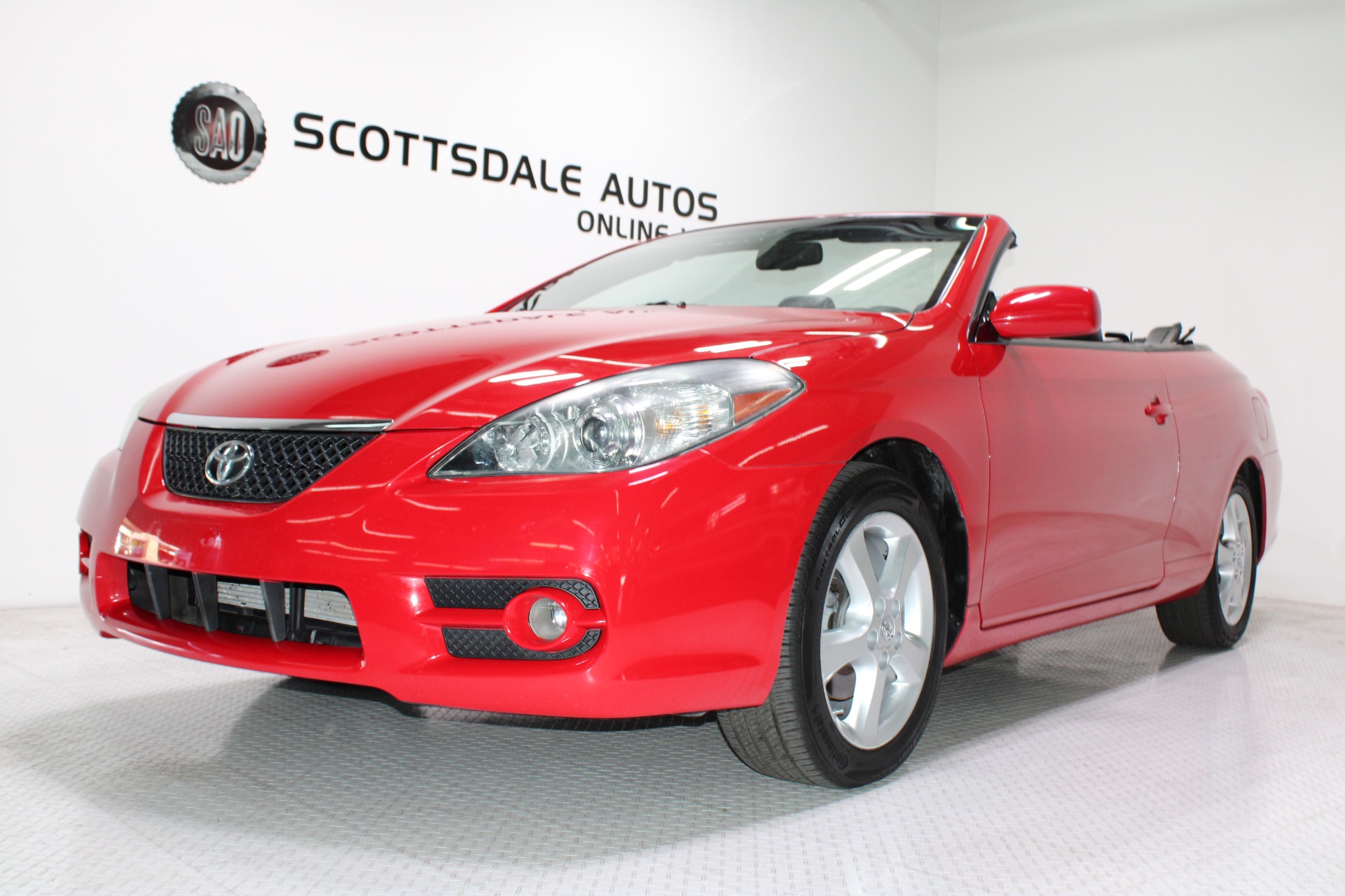 This cute as can be Absolutely red 2007 Toyota Camry Solara Convertible is offered to you for sale by Scottsdale Autos Online, LLC. Just 2 owners since new and a mere 60k miles, this little beauty is sure to please! Style, reliability, safety and fun all in one unique package! Convertible season is here, drop the top and enjoy the cooler evenings. Great value and joy for the price. If you want fun and reliability on a budget, this is the perfect option. Fully inspected, serviced and ready to enjoy! WWW.SCOTTSDALEAUTOSONLINE.COM FOR MORE PICS, FREE CARFAX AND MORE INFO. OR STOP BY AND VISIT OUR INDOOR, AIR-CONDITIONED SHOWROOM. AS ALWAYS, SCOTTSDALE AUTOS ONLINE IS YOUR SOURCE FOR CLEAN, NO ACCIDENT, LOW MILE LUXURY CARS IN AZ! There is still plenty of tread left on the tires. The paint has a showroom shine. This vehicle has all of the right options. With just 60,462 miles, this car is barely broken in. Very low mileage vehicle. This was an extra vehicle for the previous owner and the mileage is consistent with its limited use. You won't find another vehicle like this with lower mileage! 100% CARFAX guaranteed! Please see attached CARFAX report. This car has successfully undergone a rigorous pre-buy inspection. An after-market warranty is available for purchase on this vehicle. It seems that this vehicle was owned by a non-smoker. Neither the ashtray, nor the cigarette lighter, appear to have been used in this vehicle. The transmission in this vehicle shifts very smoothly. Very smooth ride! All electronic components in working condition. All interior components are in good working order. One of the most attractive color combinations available on a Camry Solara! A Camry Solara in this condition, with these options and this color combination is an absolute rarity! This vehicle is priced to sell. Competitively priced for a car in this condition. This Camry Solara is the epitome of craftsmanship. This is destined to be a classic. The perfect blend of luxury and performance. We have all manuals and all sets of keys. This vehicle was used as a fair-weather car only. We can help facilitate low-cost shipping directly to your door. At Scottsdale Autos Online, no matter what vehicle you are looking for, we can find it for you. At Scottsdale Autos Online, we strive to provide you with the best quality vehicles for the lowest possible price, and this Camry Solara is no exception.