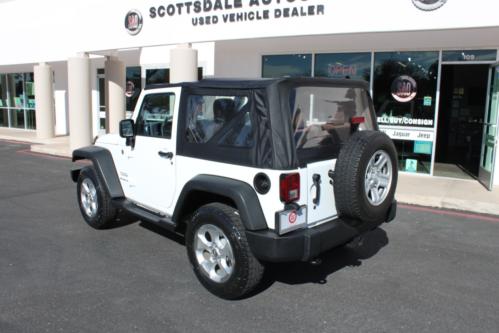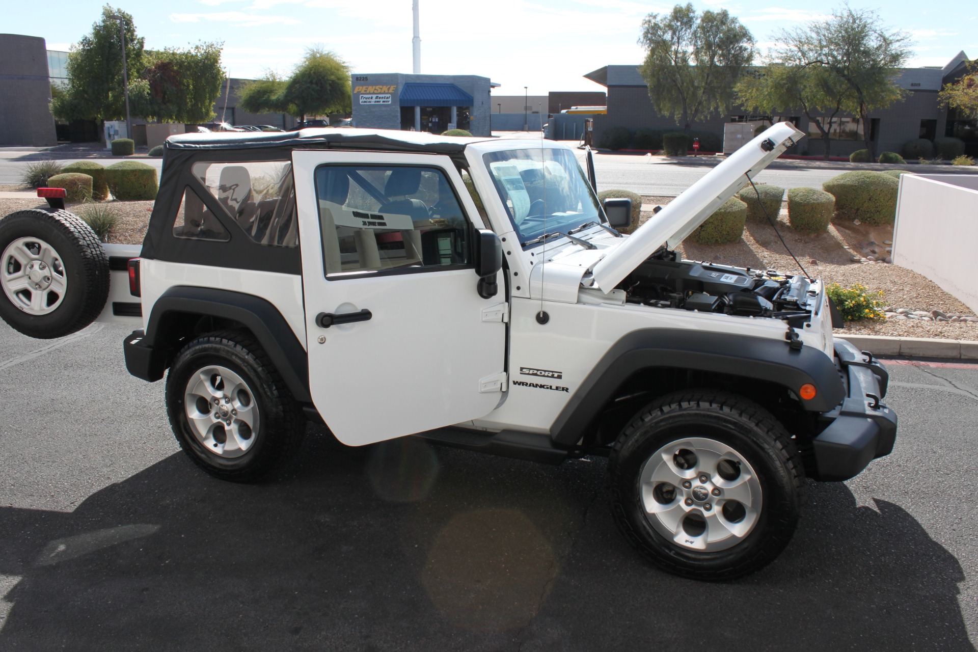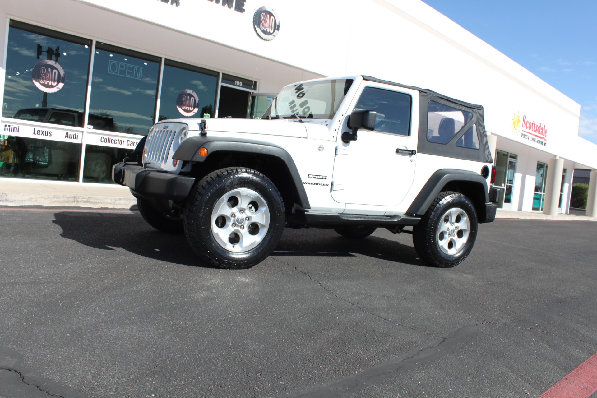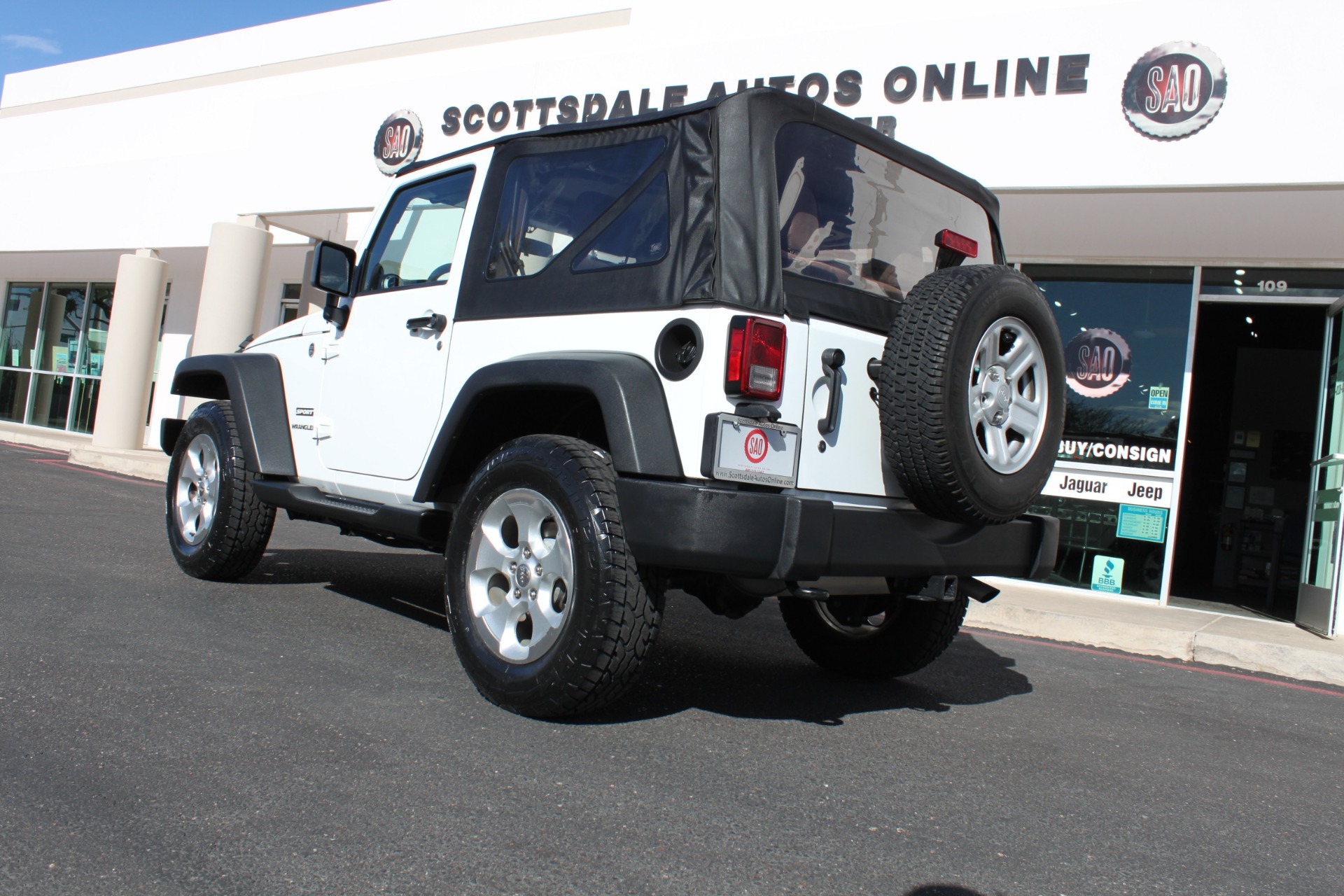 This 2012 Jeep Wrangler Sport 4X4 is offered to you for sale by Scottsdale Autos Online. WWW.SCOTTSDALEAUTOSONLINE.COM FOR MORE PICS, FREE CARFAX AND MORE INFO. OR STOP BY AND VISIT OUR INDOOR, AIR-CONDITIONED SHOWROOM. AS ALWAYS, SCOTTSDALE AUTOS ONLINE IS YOUR SOURCE FOR CLEAN, LOW MILE LUXURY CARS IN AZ! Brand new tires, soft top for easy drop top fun! Off roading weather is here so hop in this white Jeep and hit the trails or just enjoy the Jeep life! Experience the freedom that comes with Jeep ownership! Automatic Transmission, ice cold A/C, premium wheels, oversized tires make this the right Jeep! Visit www.ScottsdaleAutosOnline.com for more pics, free Carfax and more info. Or stop by and visit our indoor, air-conditioned showroom. As always, Scottsdale Autos Online is your source for clean, no accident, low mile luxury cars in AZ! The tires on the vehicle appear to have been recently replaced. There is still plenty of tread left on the tires. The paint has a showroom shine. The body of this vehicle is straight and the paint is in excellent condition, with absolutely no signs of prior damage or reconditioning. This vehicle has all of the right options. With just 56,054 miles, this car is barely broken in. This was an extra vehicle for the previous owner and the mileage is consistent with its limited use. 100% CARFAX guaranteed! Please see attached CARFAX report. Contact me to request CARFAX report. This car has successfully undergone a rigorous pre-buy inspection. The interior of this vehicle is virtually flawless. An after-market warranty is available for purchase on this vehicle. Ask me about how to get an extended warranty on this vehicle. It seems that this vehicle was owned by a non-smoker. Neither the ashtray, nor the cigarette lighter, appear to have been used in this vehicle. The transmission in this vehicle shifts very smoothly. Very smooth ride! All electronic components in working condition. All interior components are in good working order. This is one of the most desirable color combinations. A Wrangler in this condition, with these options and this color combination is an absolute rarity! This vehicle is priced to sell. Competitively priced for a car in this condition. This is destined to be a classic. From car pooling the neighborhood kids, to navigating the most rugged terrain imaginable -the 2012 Wrangler can do it all! We have all manuals and all sets of keys. This vehicle was used as a fair-weather car only. We offer free airport pick-up. We can help facilitate low-cost shipping directly to your door. At Scottsdale Autos Online, no matter what vehicle you are looking for, we can find it for you. Scottsdale Autos Online, LLC is excited to offer this 2014 Jeep Wrangler Sport! At Scottsdale Autos Online, we strive to provide you with the best quality vehicles for the lowest possible price, and this Wrangler is no exception.