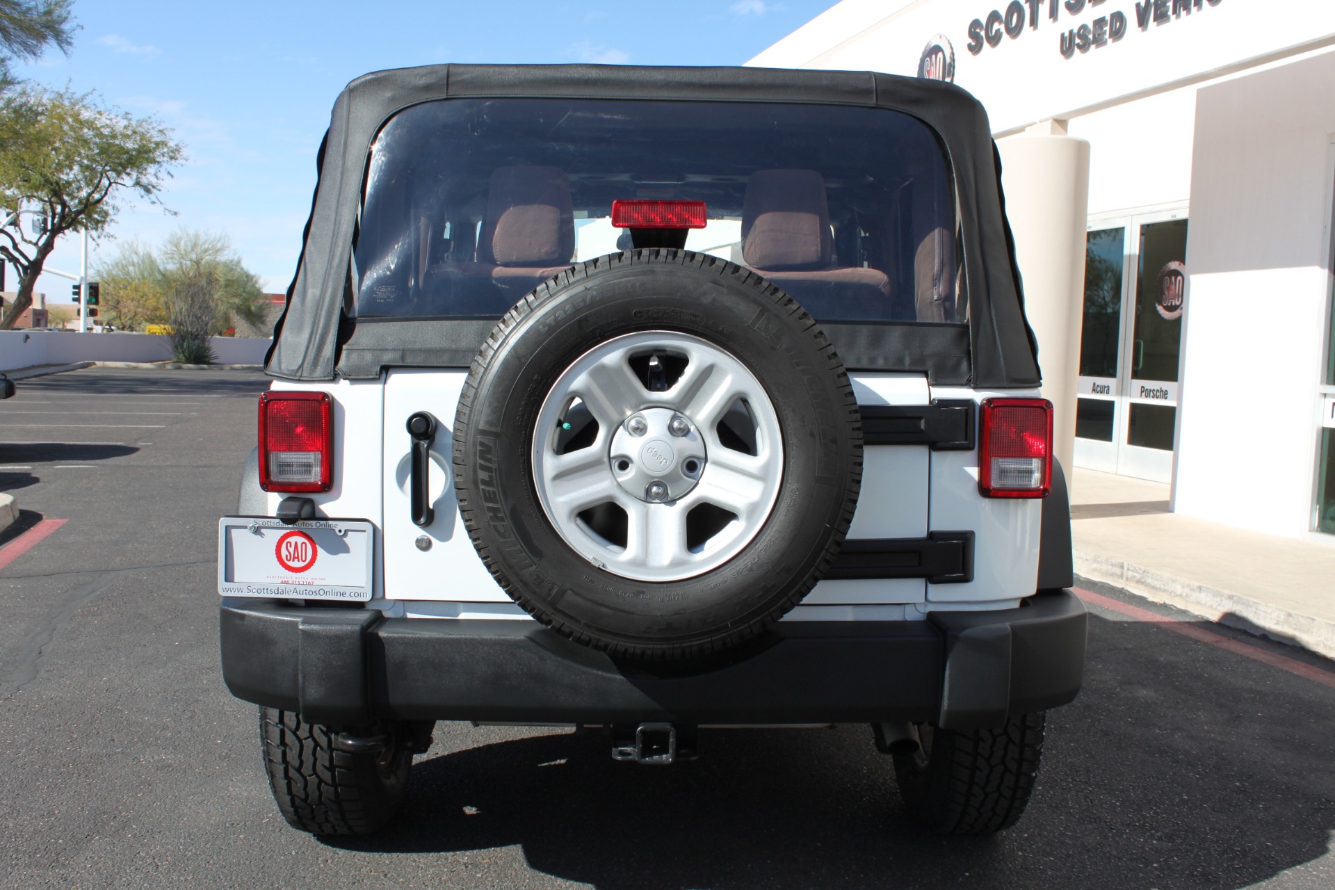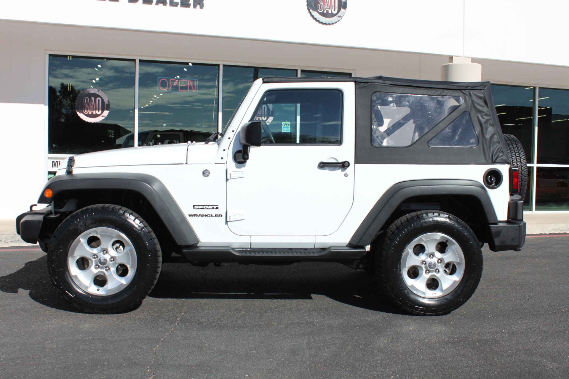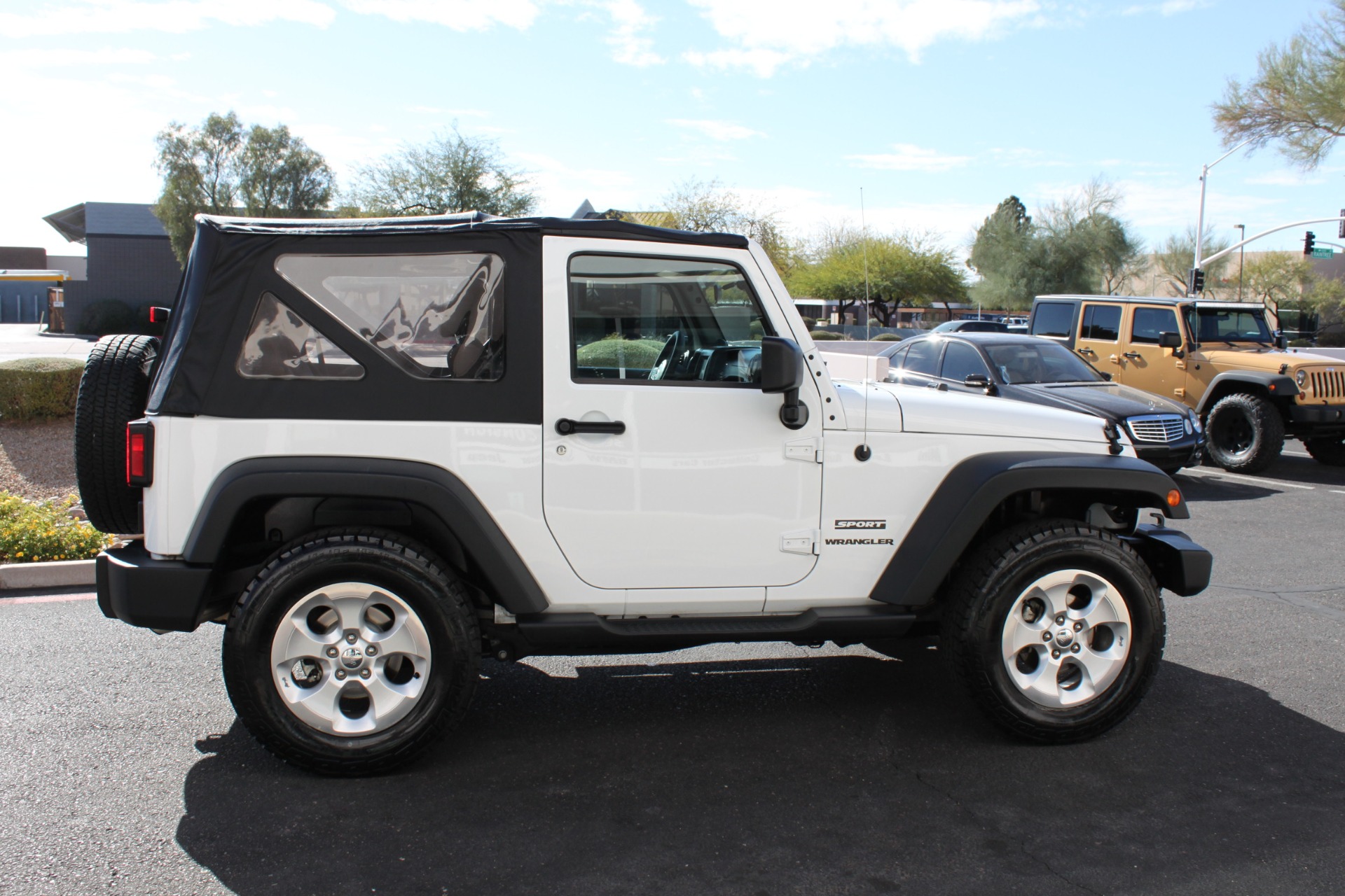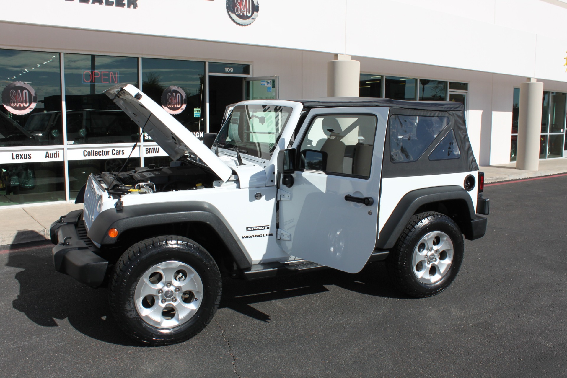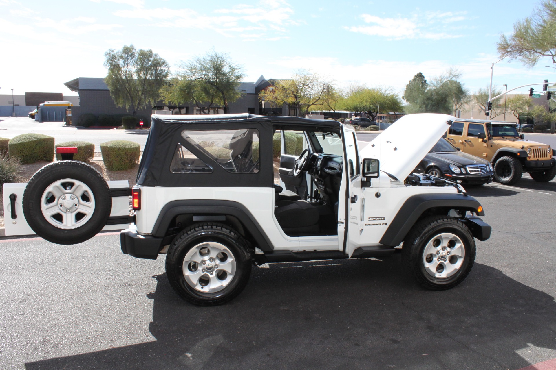 This 2012 Jeep Wrangler Sport 4X4 is offered to you for sale by Scottsdale Autos Online. WWW.SCOTTSDALEAUTOSONLINE.COM FOR MORE PICS, FREE CARFAX AND MORE INFO. OR STOP BY AND VISIT OUR INDOOR, AIR-CONDITIONED SHOWROOM. AS ALWAYS, SCOTTSDALE AUTOS ONLINE IS YOUR SOURCE FOR CLEAN, LOW MILE LUXURY CARS IN AZ! Brand new tires, soft top for easy drop top fun! Off roading weather is here so hop in this white Jeep and hit the trails or just enjoy the Jeep life! Experience the freedom that comes with Jeep ownership! Automatic Transmission, ice cold A/C, premium wheels, oversized tires make this the right Jeep! Visit www.ScottsdaleAutosOnline.com for more pics, free Carfax and more info. Or stop by and visit our indoor, air-conditioned showroom. As always, Scottsdale Autos Online is your source for clean, no accident, low mile luxury cars in AZ! The tires on the vehicle appear to have been recently replaced. There is still plenty of tread left on the tires. The paint has a showroom shine. The body of this vehicle is straight and the paint is in excellent condition, with absolutely no signs of prior damage or reconditioning. This vehicle has all of the right options. With just 56,054 miles, this car is barely broken in. This was an extra vehicle for the previous owner and the mileage is consistent with its limited use. 100% CARFAX guaranteed! Please see attached CARFAX report. Contact me to request CARFAX report. This car has successfully undergone a rigorous pre-buy inspection. The interior of this vehicle is virtually flawless. An after-market warranty is available for purchase on this vehicle. Ask me about how to get an extended warranty on this vehicle. It seems that this vehicle was owned by a non-smoker. Neither the ashtray, nor the cigarette lighter, appear to have been used in this vehicle. The transmission in this vehicle shifts very smoothly. Very smooth ride! All electronic components in working condition. All interior components are in good working order. This is one of the most desirable color combinations. A Wrangler in this condition, with these options and this color combination is an absolute rarity! This vehicle is priced to sell. Competitively priced for a car in this condition. This is destined to be a classic. From car pooling the neighborhood kids, to navigating the most rugged terrain imaginable -the 2012 Wrangler can do it all! We have all manuals and all sets of keys. This vehicle was used as a fair-weather car only. We offer free airport pick-up. We can help facilitate low-cost shipping directly to your door. At Scottsdale Autos Online, no matter what vehicle you are looking for, we can find it for you. Scottsdale Autos Online, LLC is excited to offer this 2014 Jeep Wrangler Sport! At Scottsdale Autos Online, we strive to provide you with the best quality vehicles for the lowest possible price, and this Wrangler is no exception.