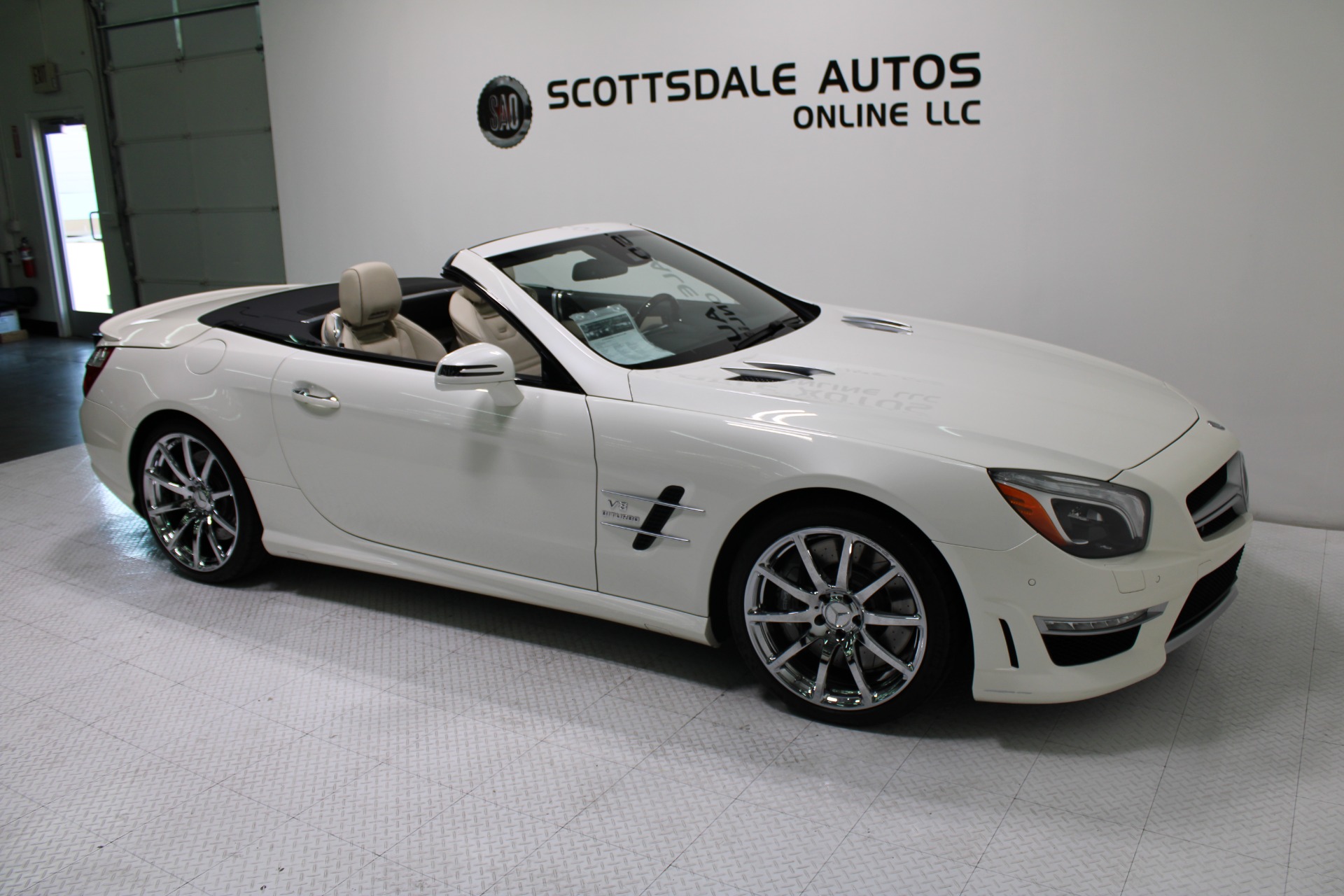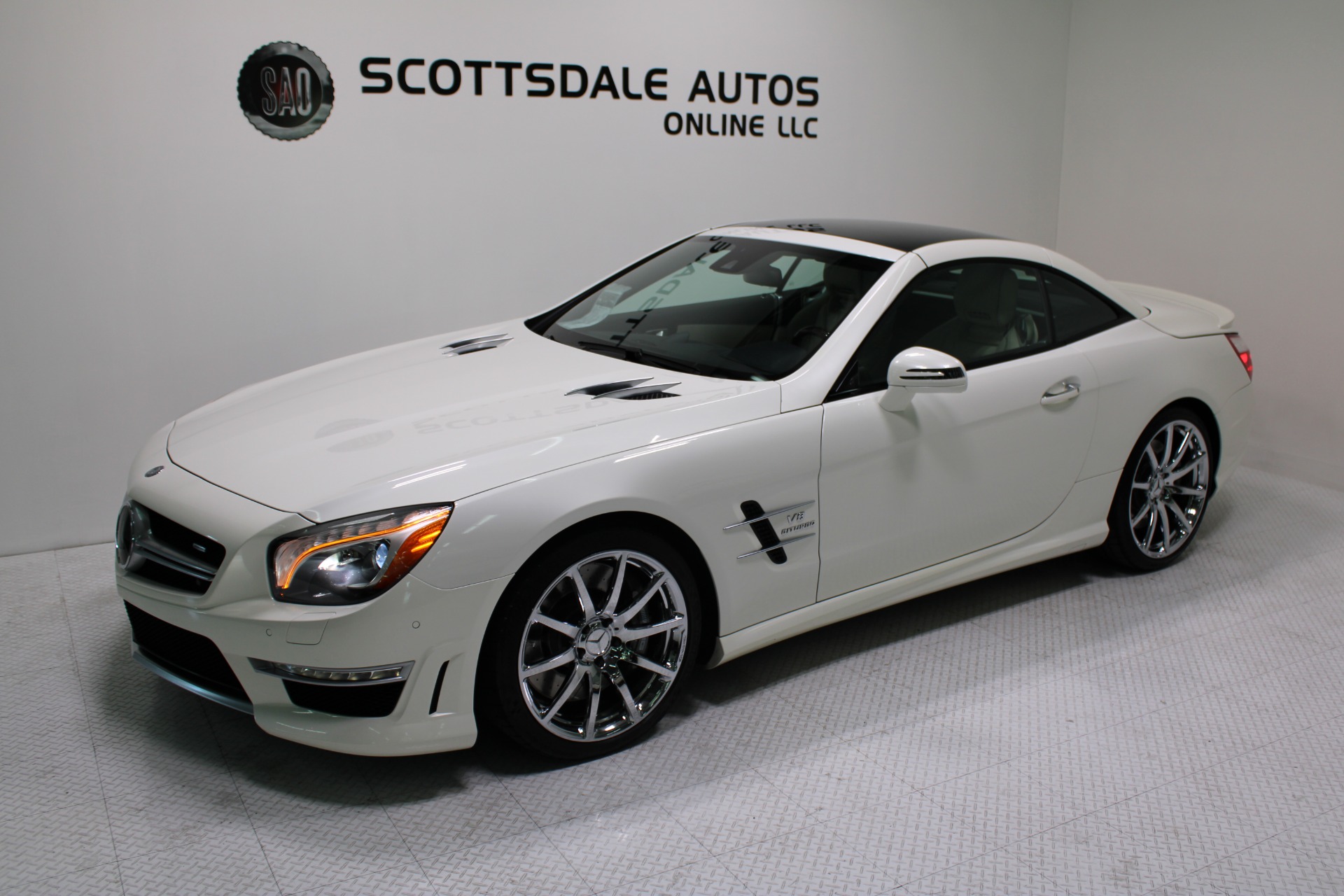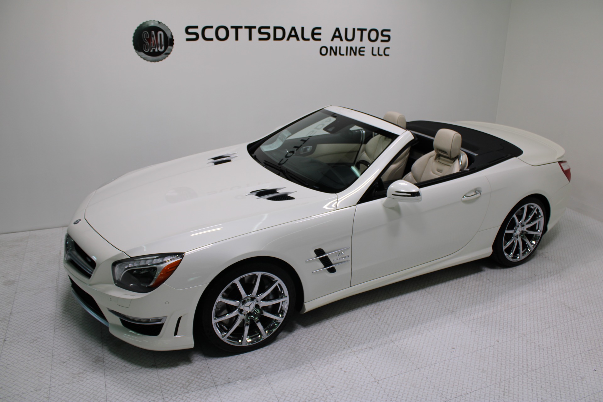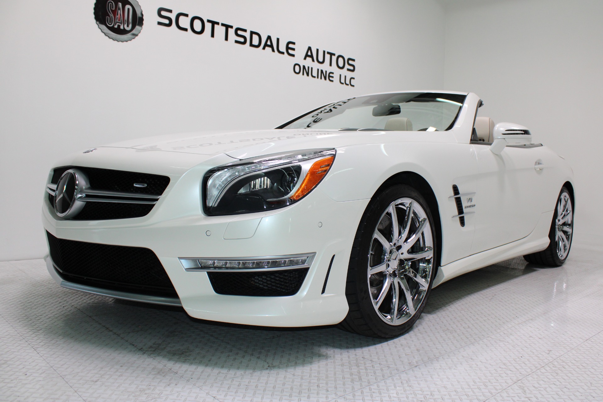 This Gorgeous 2013 Mercedes-Benz SL63 is offered to you for sale by Scottsdale Autos Online LLC. We are honored to present a most breathtaking example of pure vehicle design decadence...this is the vehicle of dreams! Visit www.ScottsdaleAutosOnline.com for more pics, free Carfax and more info. Or stop by and visit our indoor, air-conditioned showroom. As always, Scottsdale Autos Online is your source for clean, no accident, low mile luxury cars in AZ! Our client is thinning the herd a little bit. The beloved SL is being offered to the next lucky owner. It's spectacular inside and out, fully inspected, detailed and ready for the next lucky owner. Diamond White over porcelain is special. California and AZ homes make this clean machine one of the best out there. There is still plenty of tread left on the tires. The paint has a showroom shine. The body of this vehicle is straight and the paint is in excellent condition, with absolutely no signs of prior damage or reconditioning. This vehicle has almost every option imaginable. With just 30,646 miles, this car is barely broken in. Very low mileage vehicle. This was an extra vehicle for the previous owner and the mileage is consistent with its limited use. 100% CARFAX guaranteed! Please see attached CARFAX report. Contact me to request CARFAX report. This car has successfully undergone a rigorous pre-buy inspection. The interior of this vehicle is virtually flawless. It seems that this vehicle was owned by a non-smoker. Neither the ashtray, nor the cigarette lighter, appear to have been used in this vehicle. The transmission in this vehicle shifts very smoothly. Very smooth ride! All electronic components in working condition. All interior components are in good working order. One of the most attractive color combinations available on an SL63. A Mercedes Benz SL63 in this condition, with these options and this color combination is an absolute rarity! This vehicle is priced to sell. Competitively priced for a car in this condition. The SL63 is the epitome of sports cars! This SL-Class is the epitome of craftsmanship. Call it class with sass, with just about every high-tech safety feature and interior amenity one could possibly want! This is destined to be a classic. The perfect blend of luxury and performance. We have all manuals and all sets of keys. This vehicle was used as a fair-weather car only. We offer free airport pick-up. We can help facilitate low-cost shipping directly to your door. At Scottsdale Autos Online, no matter what vehicle you are looking for, we can find it for you. Scottsdale Autos Online, LLC is excited to offer this 2013 Mercedes Benz SL63! At Scottsdale Autos Online, we strive to provide you with the best quality vehicles for the lowest possible price, and this SL-Class is no exception.
