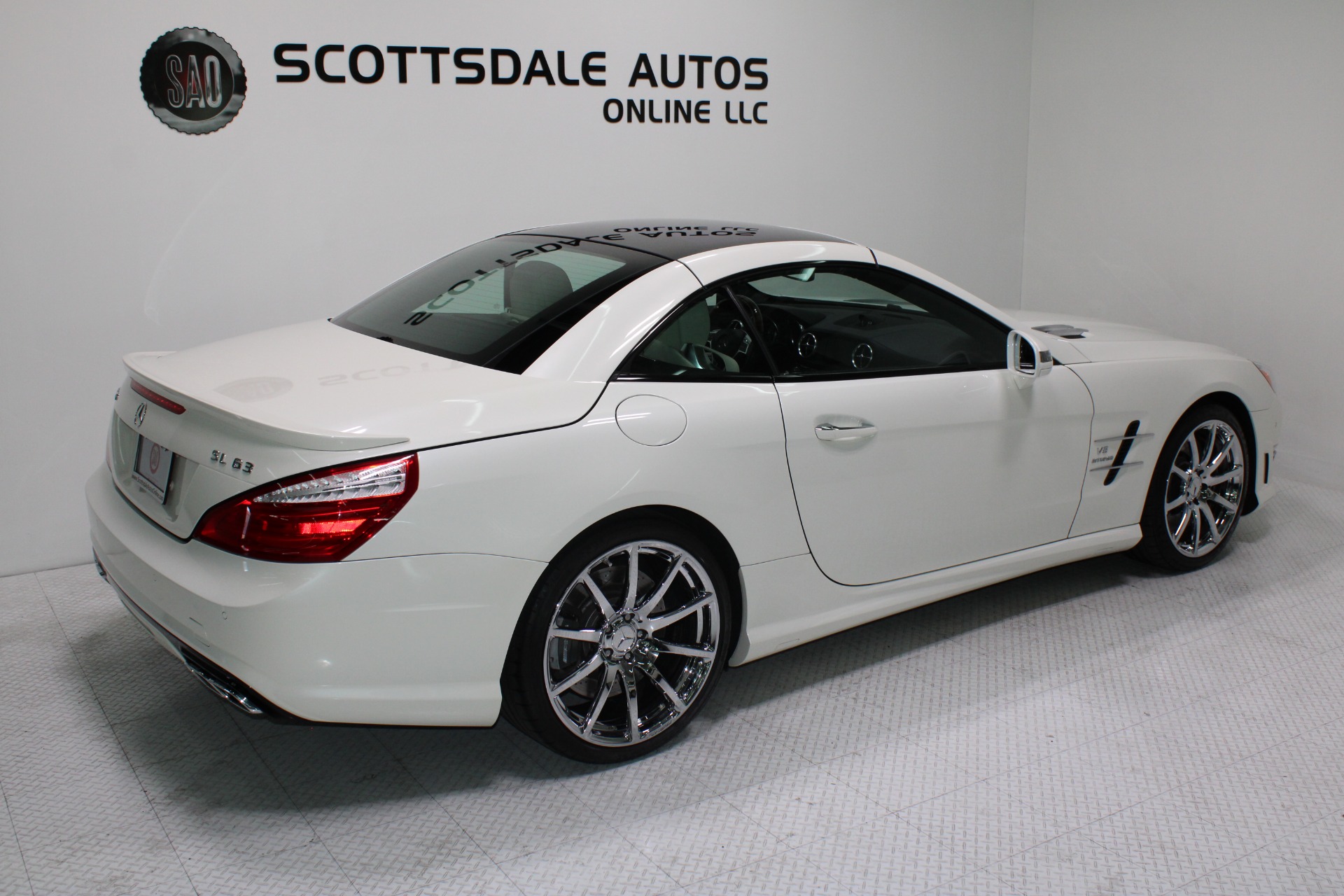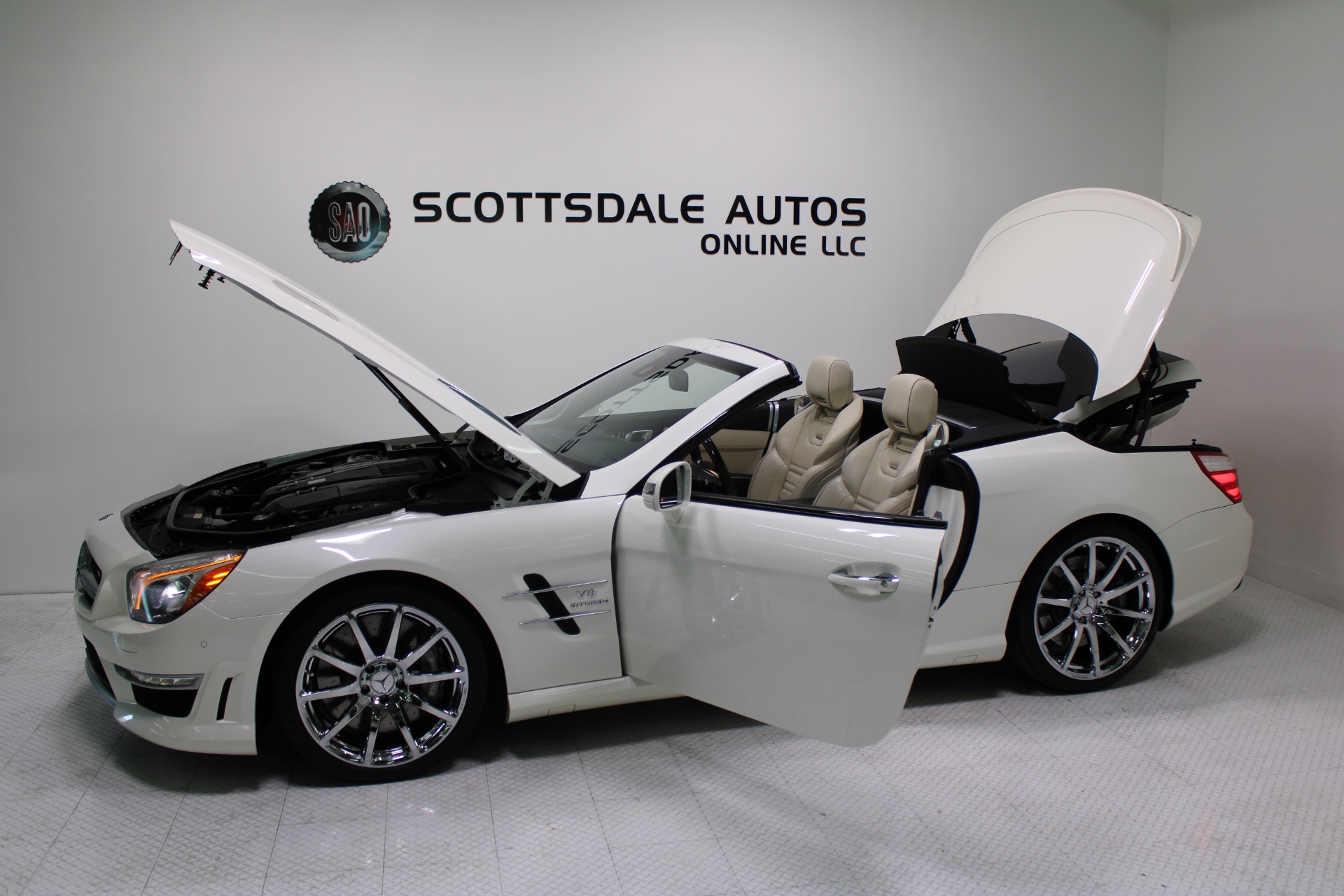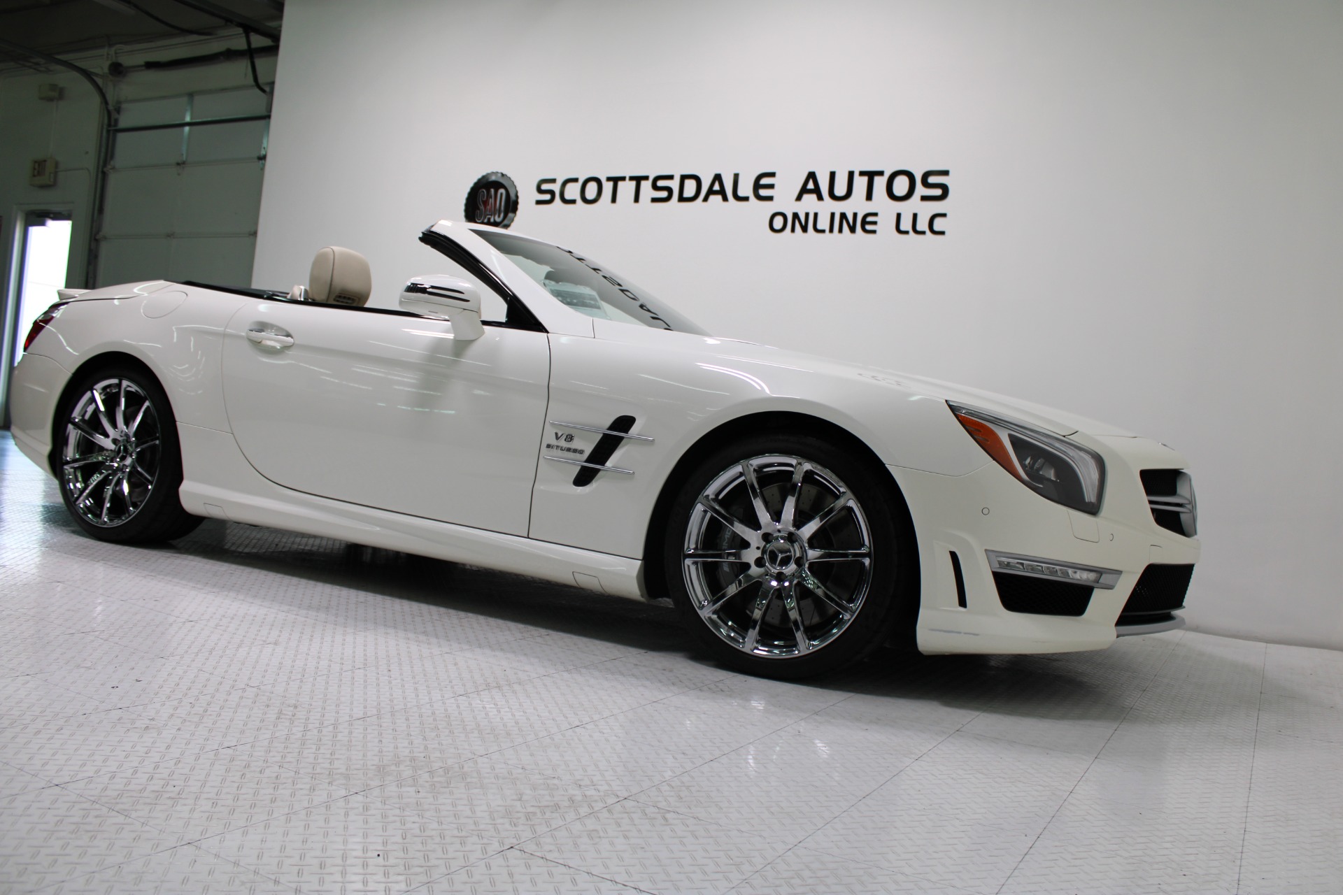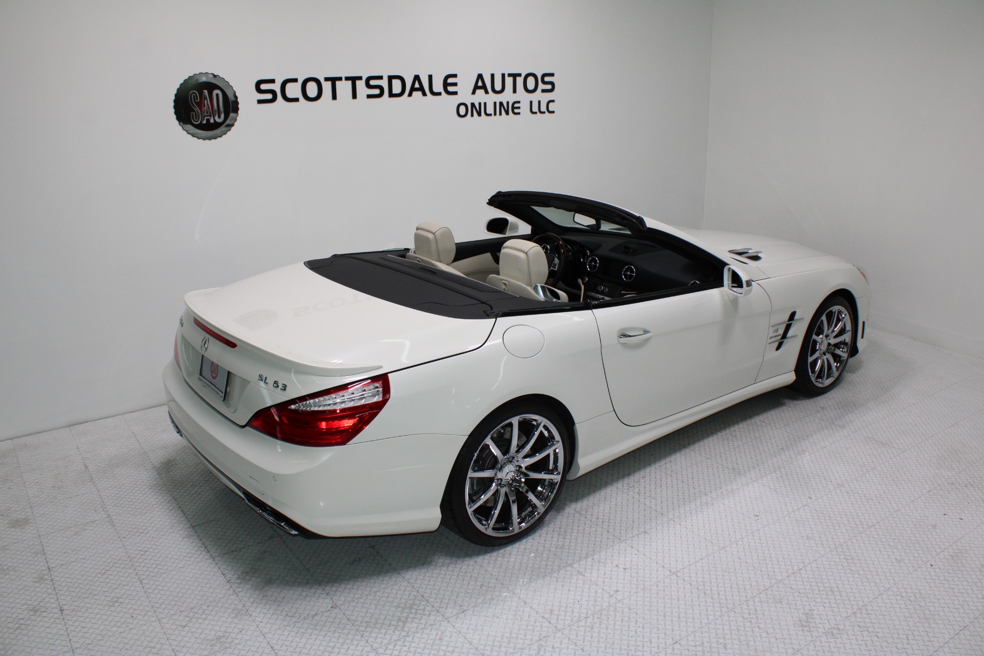 This Gorgeous 2013 Mercedes-Benz SL63 is offered to you for sale by Scottsdale Autos Online LLC. We are honored to present a most breathtaking example of pure vehicle design decadence...this is the vehicle of dreams! Visit www.ScottsdaleAutosOnline.com for more pics, free Carfax and more info. Or stop by and visit our indoor, air-conditioned showroom. As always, Scottsdale Autos Online is your source for clean, no accident, low mile luxury cars in AZ! Our client is thinning the herd a little bit. The beloved SL is being offered to the next lucky owner. It's spectacular inside and out, fully inspected, detailed and ready for the next lucky owner. Diamond White over porcelain is special. California and AZ homes make this clean machine one of the best out there. There is still plenty of tread left on the tires. The paint has a showroom shine. The body of this vehicle is straight and the paint is in excellent condition, with absolutely no signs of prior damage or reconditioning. This vehicle has almost every option imaginable. With just 30,646 miles, this car is barely broken in. Very low mileage vehicle. This was an extra vehicle for the previous owner and the mileage is consistent with its limited use. 100% CARFAX guaranteed! Please see attached CARFAX report. Contact me to request CARFAX report. This car has successfully undergone a rigorous pre-buy inspection. The interior of this vehicle is virtually flawless. It seems that this vehicle was owned by a non-smoker. Neither the ashtray, nor the cigarette lighter, appear to have been used in this vehicle. The transmission in this vehicle shifts very smoothly. Very smooth ride! All electronic components in working condition. All interior components are in good working order. One of the most attractive color combinations available on an SL63. A Mercedes Benz SL63 in this condition, with these options and this color combination is an absolute rarity! This vehicle is priced to sell. Competitively priced for a car in this condition. The SL63 is the epitome of sports cars! This SL-Class is the epitome of craftsmanship. Call it class with sass, with just about every high-tech safety feature and interior amenity one could possibly want! This is destined to be a classic. The perfect blend of luxury and performance. We have all manuals and all sets of keys. This vehicle was used as a fair-weather car only. We offer free airport pick-up. We can help facilitate low-cost shipping directly to your door. At Scottsdale Autos Online, no matter what vehicle you are looking for, we can find it for you. Scottsdale Autos Online, LLC is excited to offer this 2013 Mercedes Benz SL63! At Scottsdale Autos Online, we strive to provide you with the best quality vehicles for the lowest possible price, and this SL-Class is no exception.