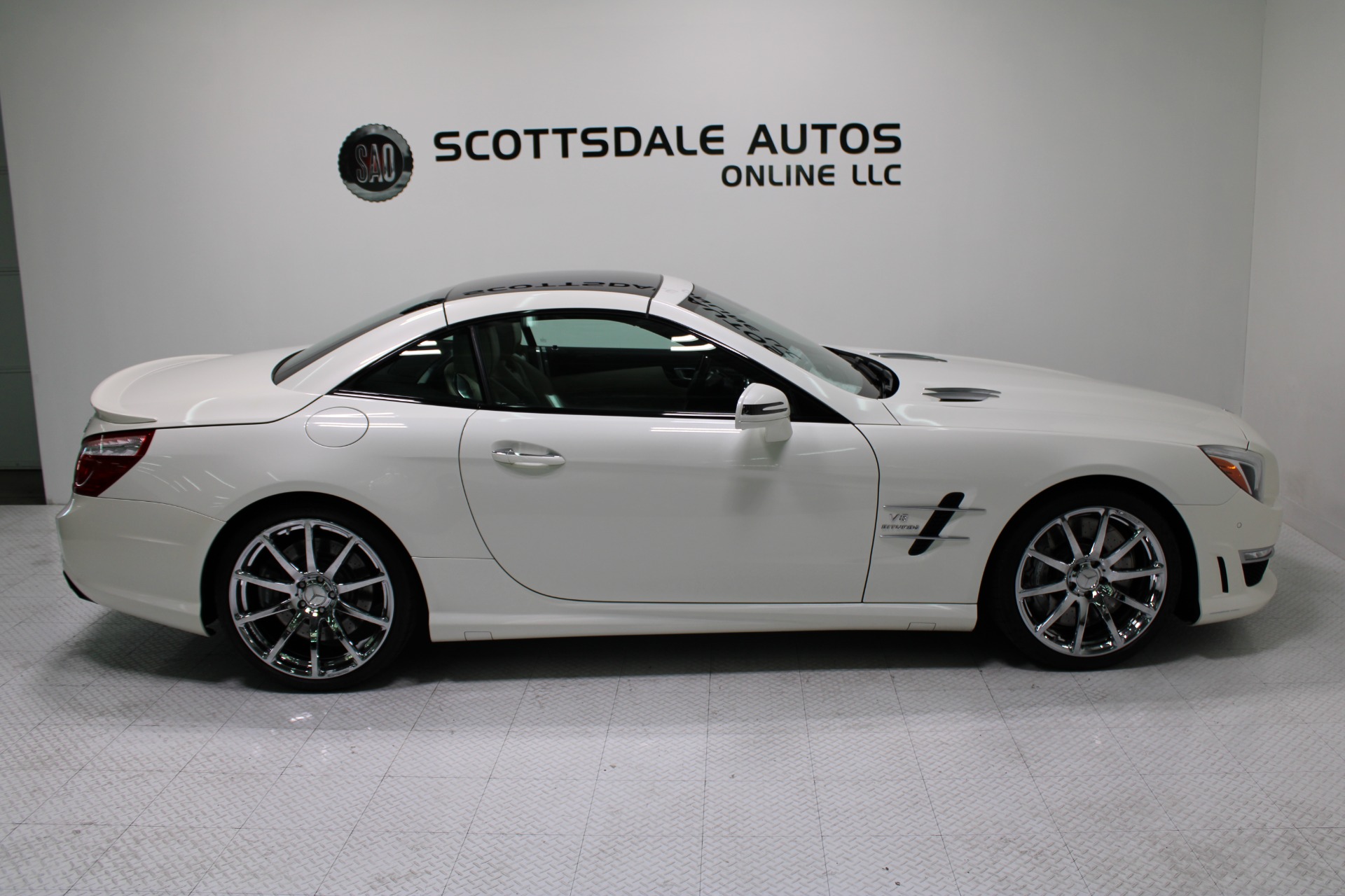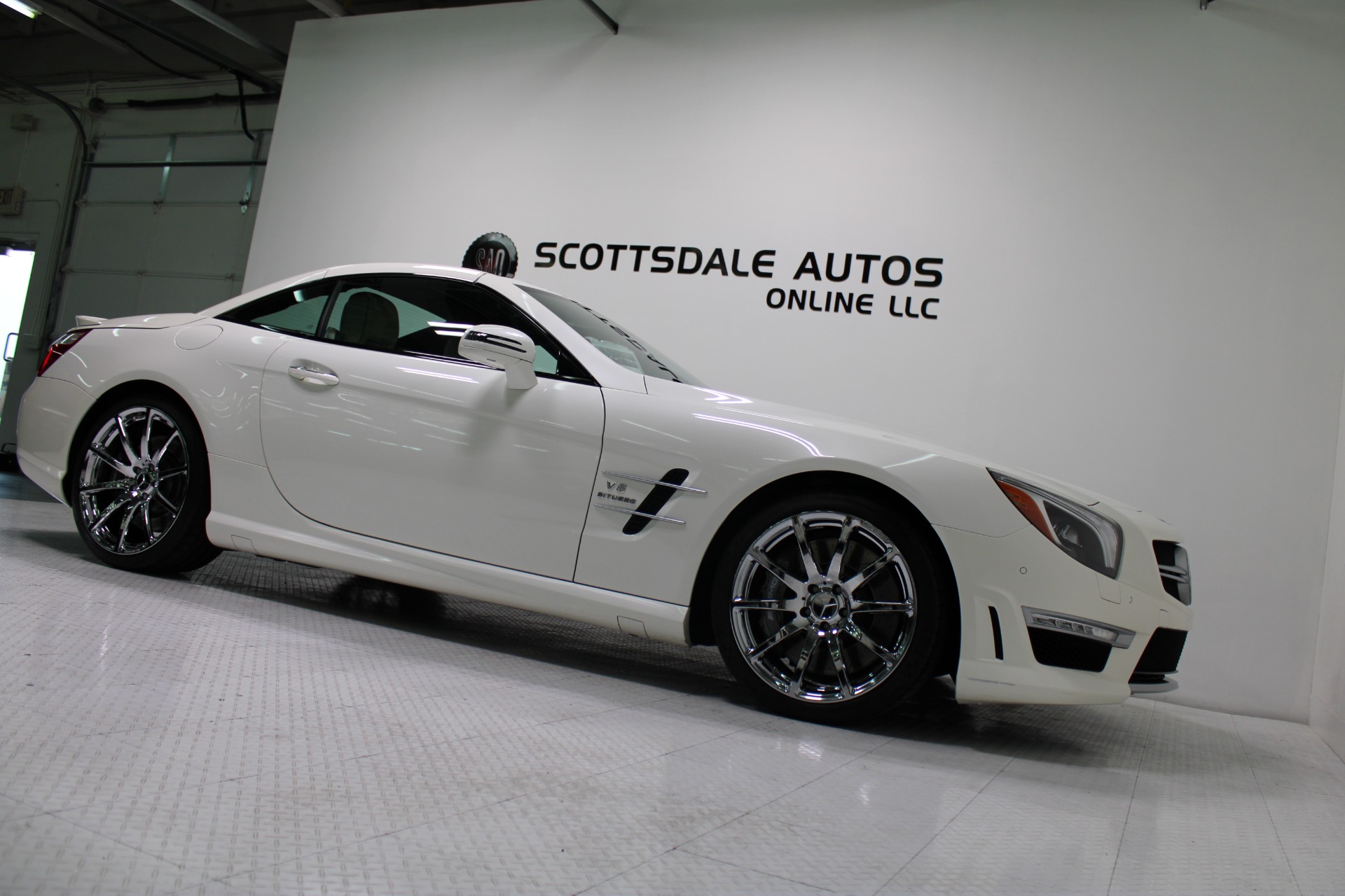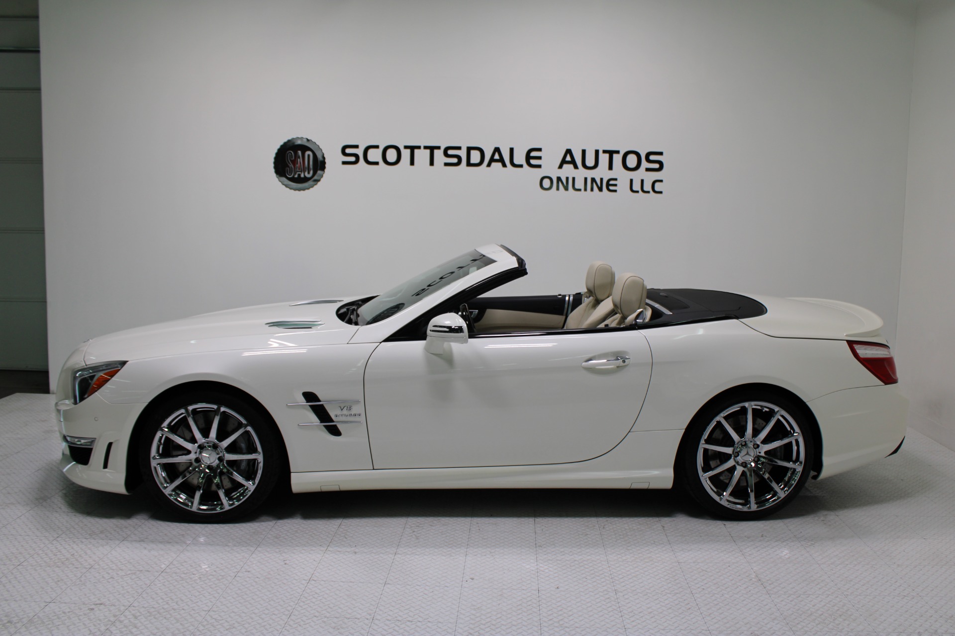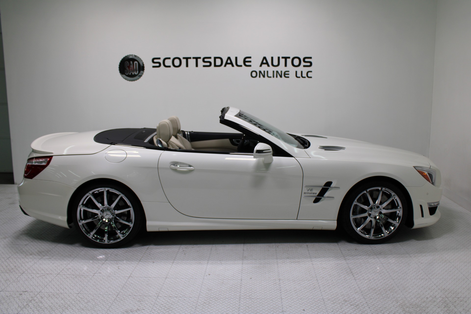 This Gorgeous 2013 Mercedes-Benz SL63 is offered to you for sale by Scottsdale Autos Online LLC. We are honored to present a most breathtaking example of pure vehicle design decadence...this is the vehicle of dreams! Visit www.ScottsdaleAutosOnline.com for more pics, free Carfax and more info. Or stop by and visit our indoor, air-conditioned showroom. As always, Scottsdale Autos Online is your source for clean, no accident, low mile luxury cars in AZ! Our client is thinning the herd a little bit. The beloved SL is being offered to the next lucky owner. It's spectacular inside and out, fully inspected, detailed and ready for the next lucky owner. Diamond White over porcelain is special. California and AZ homes make this clean machine one of the best out there. There is still plenty of tread left on the tires. The paint has a showroom shine. The body of this vehicle is straight and the paint is in excellent condition, with absolutely no signs of prior damage or reconditioning. This vehicle has almost every option imaginable. With just 30,646 miles, this car is barely broken in. Very low mileage vehicle. This was an extra vehicle for the previous owner and the mileage is consistent with its limited use. 100% CARFAX guaranteed! Please see attached CARFAX report. Contact me to request CARFAX report. This car has successfully undergone a rigorous pre-buy inspection. The interior of this vehicle is virtually flawless. It seems that this vehicle was owned by a non-smoker. Neither the ashtray, nor the cigarette lighter, appear to have been used in this vehicle. The transmission in this vehicle shifts very smoothly. Very smooth ride! All electronic components in working condition. All interior components are in good working order. One of the most attractive color combinations available on an SL63. A Mercedes Benz SL63 in this condition, with these options and this color combination is an absolute rarity! This vehicle is priced to sell. Competitively priced for a car in this condition. The SL63 is the epitome of sports cars! This SL-Class is the epitome of craftsmanship. Call it class with sass, with just about every high-tech safety feature and interior amenity one could possibly want! This is destined to be a classic. The perfect blend of luxury and performance. We have all manuals and all sets of keys. This vehicle was used as a fair-weather car only. We offer free airport pick-up. We can help facilitate low-cost shipping directly to your door. At Scottsdale Autos Online, no matter what vehicle you are looking for, we can find it for you. Scottsdale Autos Online, LLC is excited to offer this 2013 Mercedes Benz SL63! At Scottsdale Autos Online, we strive to provide you with the best quality vehicles for the lowest possible price, and this SL-Class is no exception.