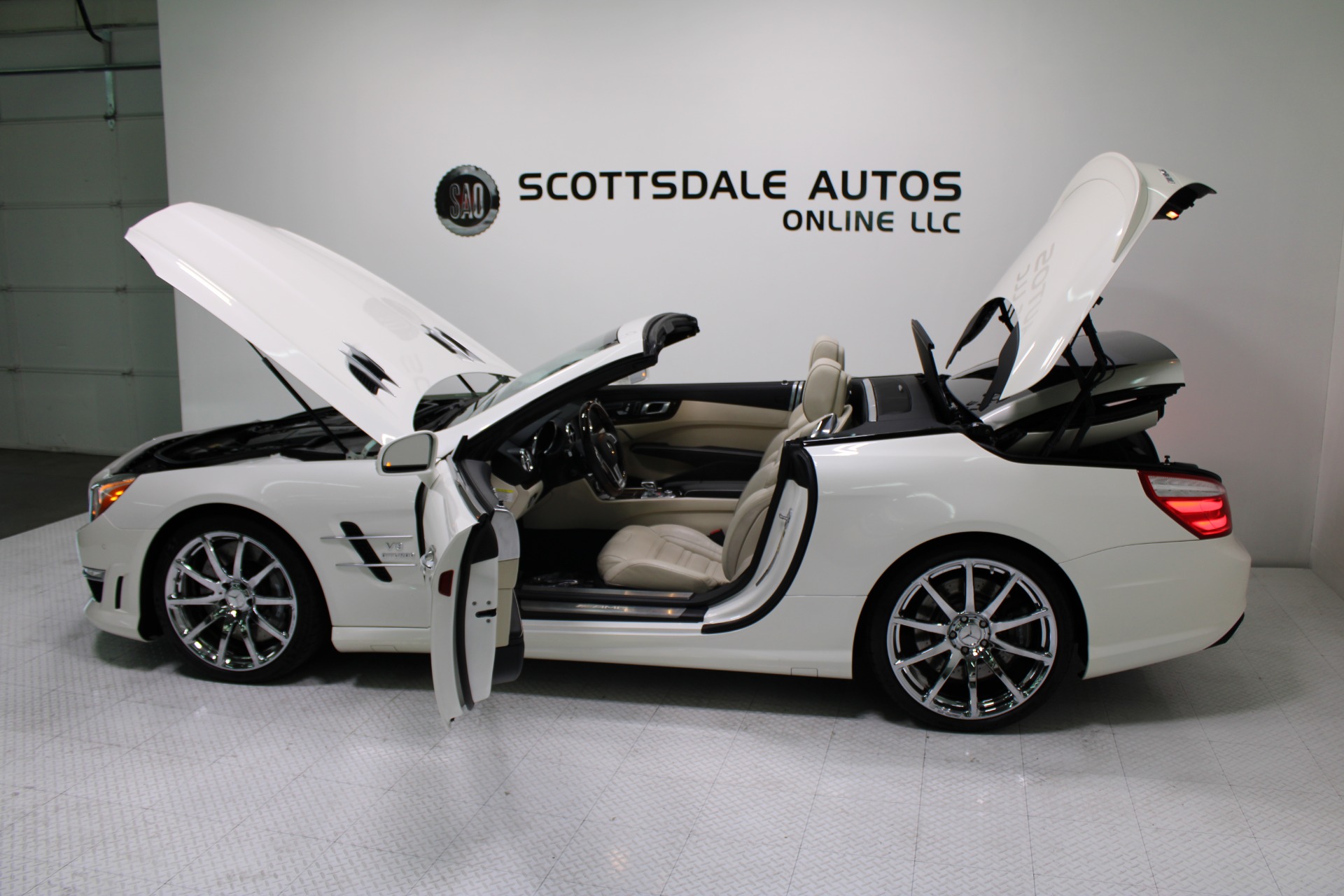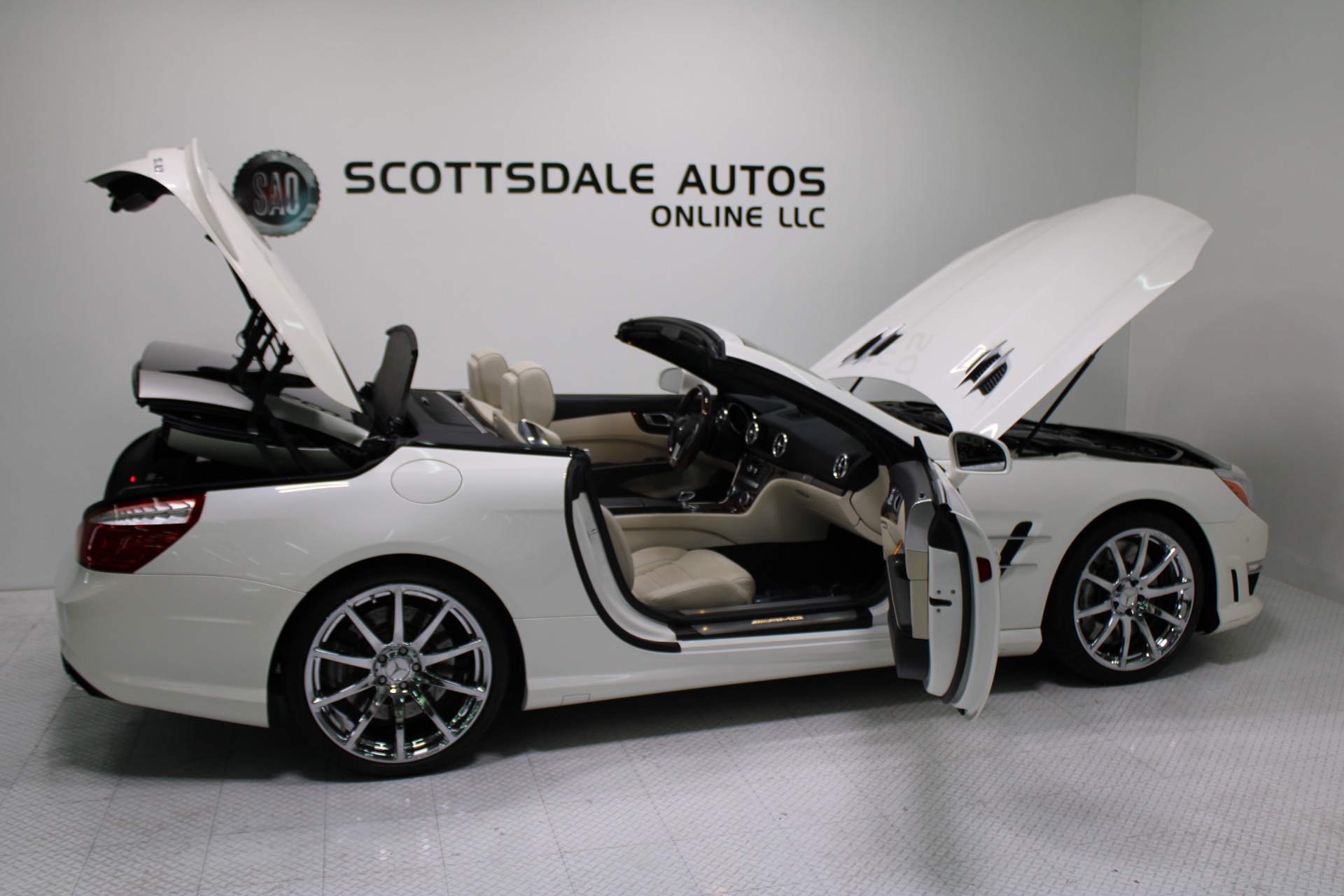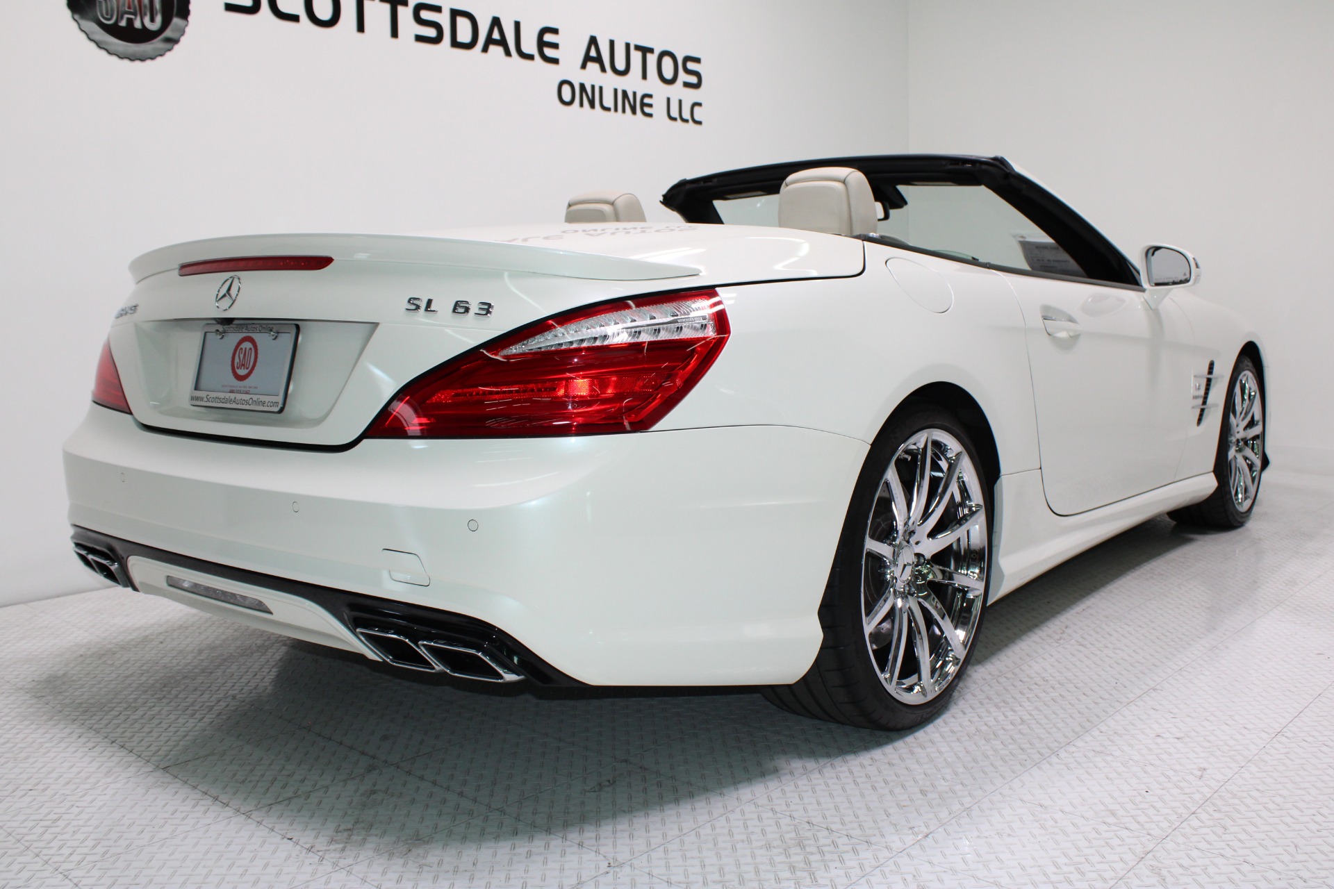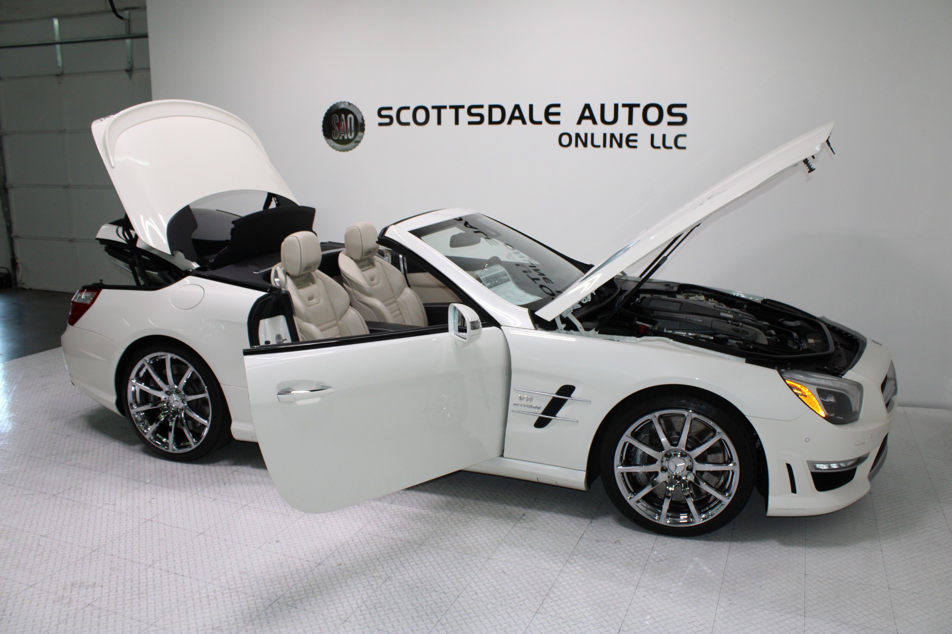 This Gorgeous 2013 Mercedes-Benz SL63 is offered to you for sale by Scottsdale Autos Online LLC. We are honored to present a most breathtaking example of pure vehicle design decadence...this is the vehicle of dreams! Visit www.ScottsdaleAutosOnline.com for more pics, free Carfax and more info. Or stop by and visit our indoor, air-conditioned showroom. As always, Scottsdale Autos Online is your source for clean, no accident, low mile luxury cars in AZ! Our client is thinning the herd a little bit. The beloved SL is being offered to the next lucky owner. It's spectacular inside and out, fully inspected, detailed and ready for the next lucky owner. Diamond White over porcelain is special. California and AZ homes make this clean machine one of the best out there. There is still plenty of tread left on the tires. The paint has a showroom shine. The body of this vehicle is straight and the paint is in excellent condition, with absolutely no signs of prior damage or reconditioning. This vehicle has almost every option imaginable. With just 30,646 miles, this car is barely broken in. Very low mileage vehicle. This was an extra vehicle for the previous owner and the mileage is consistent with its limited use. 100% CARFAX guaranteed! Please see attached CARFAX report. Contact me to request CARFAX report. This car has successfully undergone a rigorous pre-buy inspection. The interior of this vehicle is virtually flawless. It seems that this vehicle was owned by a non-smoker. Neither the ashtray, nor the cigarette lighter, appear to have been used in this vehicle. The transmission in this vehicle shifts very smoothly. Very smooth ride! All electronic components in working condition. All interior components are in good working order. One of the most attractive color combinations available on an SL63. A Mercedes Benz SL63 in this condition, with these options and this color combination is an absolute rarity! This vehicle is priced to sell. Competitively priced for a car in this condition. The SL63 is the epitome of sports cars! This SL-Class is the epitome of craftsmanship. Call it class with sass, with just about every high-tech safety feature and interior amenity one could possibly want! This is destined to be a classic. The perfect blend of luxury and performance. We have all manuals and all sets of keys. This vehicle was used as a fair-weather car only. We offer free airport pick-up. We can help facilitate low-cost shipping directly to your door. At Scottsdale Autos Online, no matter what vehicle you are looking for, we can find it for you. Scottsdale Autos Online, LLC is excited to offer this 2013 Mercedes Benz SL63! At Scottsdale Autos Online, we strive to provide you with the best quality vehicles for the lowest possible price, and this SL-Class is no exception.