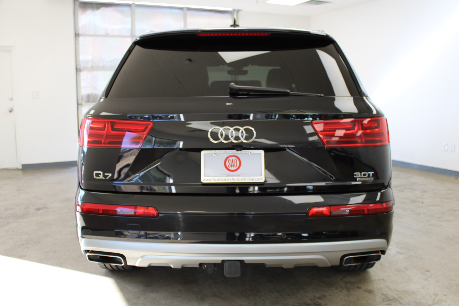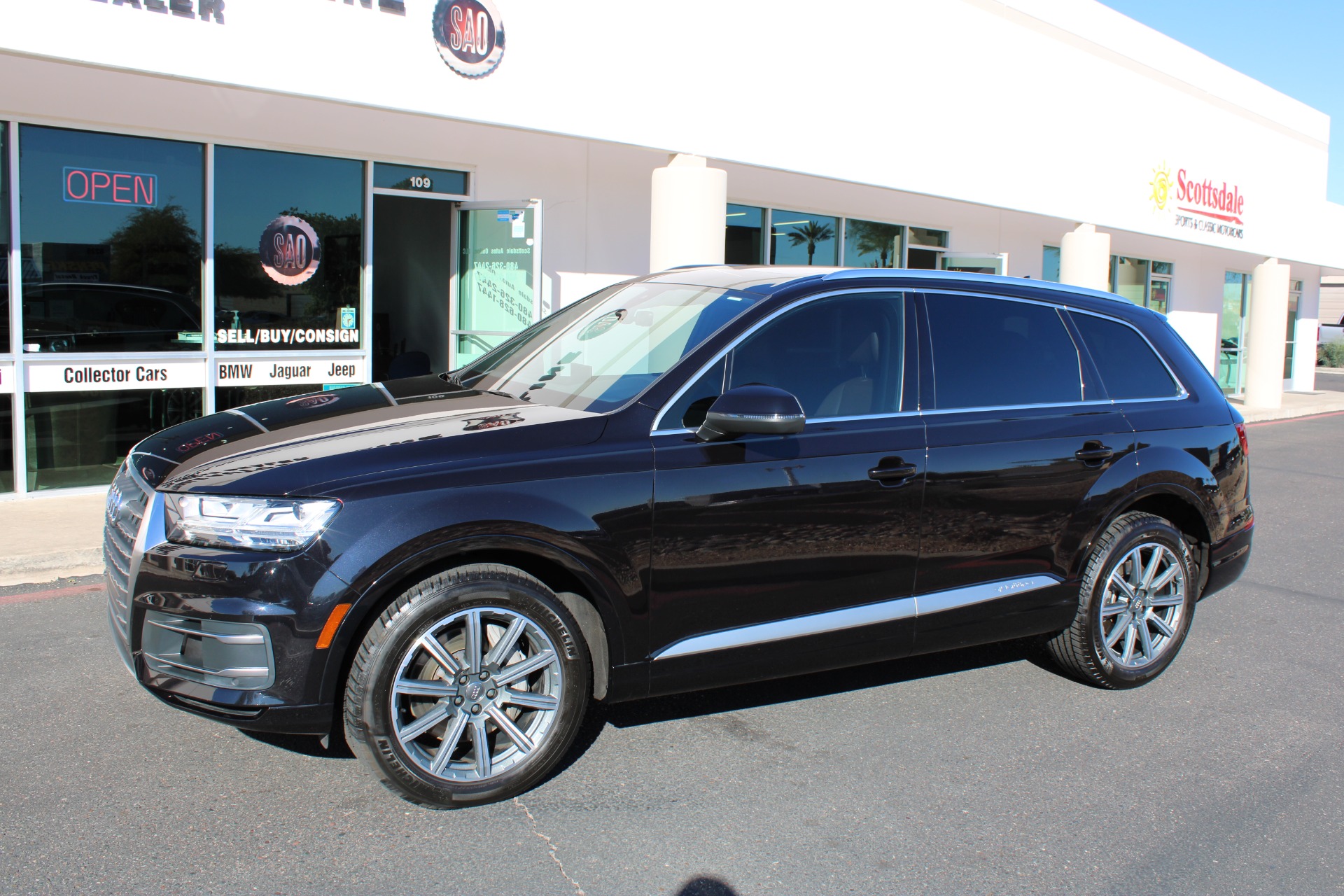 This 2018 Audi Q7 Premium Plus 3.0 Quattro is offered to you for sale by Scottsdale Autos Online, LLC. Visit www.ScottsdaleAutosOnline.com for more pics, free Carfax and more info. Or stop by and visit our indoor, air-conditioned showroom. As always, Scottsdale Autos Online is your source for clean, no accident, low mile luxury cars in AZ! Freshly traded in by one of our local clients, this gorgeous Q7 is fully loaded with all the options and finished in metallic black over brown. Factory warranty still remains, aftermarket warranty available. Ask for more info. The tires on the vehicle appear to have been recently replaced. There is still plenty of tread left on the tires. The paint has a showroom shine. The body of this vehicle is straight and the paint is in excellent condition, with absolutely no signs of prior damage or reconditioning. This vehicle is fully-loaded. With just 36,111 miles, this car is barely broken in. This was an extra vehicle for the previous owner and the mileage is consistent with its limited use. 100% CARFAX guaranteed! Please see attached CARFAX report. Contact me to request CARFAX report. This car has successfully undergone a rigorous pre-buy inspection. The interior of this vehicle is virtually flawless. This car comes with the balance of its existing factory warranty. The balance of the factory warranty will be transferred to the new owner of this vehicle. It seems that this vehicle was owned by a non-smoker. Neither the ashtray, nor the cigarette lighter, appear to have been used in this vehicle. The transmission in this vehicle shifts very smoothly. Very smooth ride! This is a one-owner car. CARFAX reports this to be a one-owner car. All electronic components in working condition. All interior components are in good working order. One of the most attractive color combinations available on a Q7! A Q7 in this condition, with these options and this color combination is an absolute rarity! This vehicle is priced to sell. You won't find a better price for this vehicle anywhere. Competitively priced for a car in this condition. This Q7 is the epitome of craftsmanship. Call it class with sass, with just about every high-tech safety feature and interior amenity one could possibly want! This is destined to be a classic. The perfect blend of luxury and performance. From car pooling the neighborhood kids, to navigating the most rugged terrain imaginable -the 2018 Q7 can do it all! When safety and responsiveness is what you want in an SUV, AWD is imperative and the Q7 is one of the few SUV's with true, electronically-controlled all-wheel-drive! The 2018 Audi Q7: the perfect blend of daily driver and family hauler. We have all manuals and all sets of keys. We offer free airport pick-up. We can help facilitate low-cost shipping directly to your door. At Scottsdale Autos Online, no matter what vehicle you are looking for, we can find it for you. Scottsdale Autos Online, LLC is excited to offer this 2018 Audi Q7 Premium Plus Quattro! At Scottsdale Autos Online, we strive to provide you with the best quality vehicles for the lowest possible price, and this Q7 is no exception.