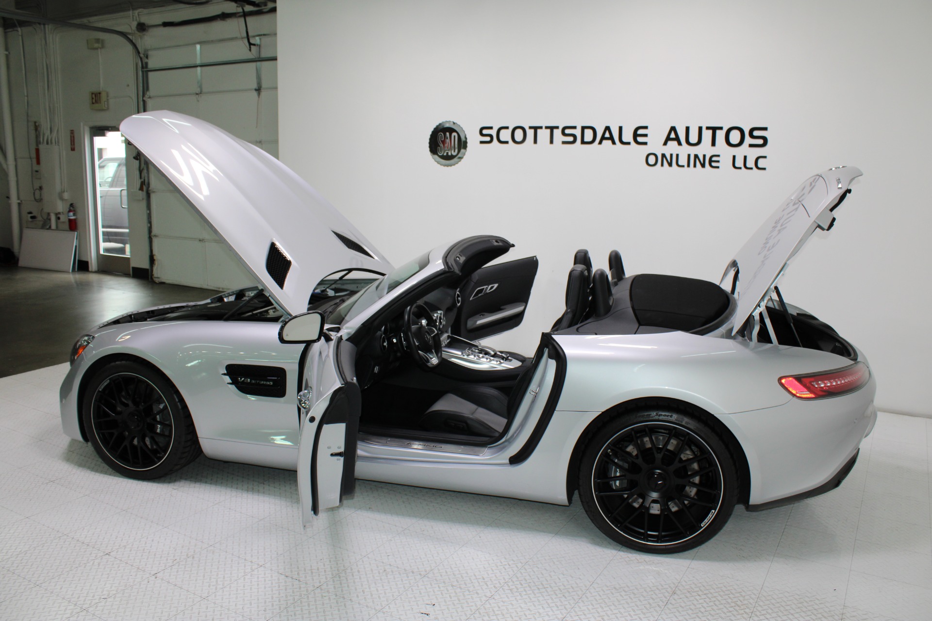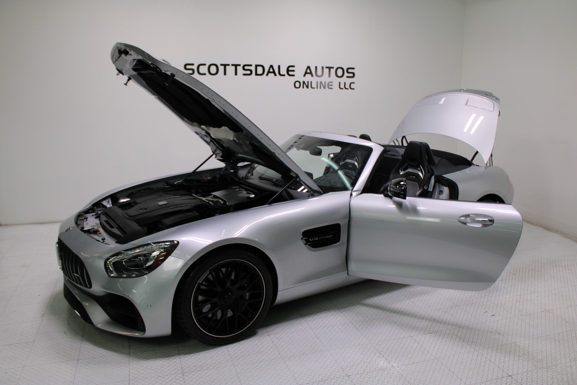 Experience the epitome of luxury and performance with this stunning 2019 Mercedes-Benz AMG GT Convertible. With just 8,326 miles on the odometer, this exquisite vehicle is a testament to engineering excellence and timeless design. Its Iridium Silver Metallic exterior gleams under any light, highlighting its sleek lines and commanding presence on the road.
